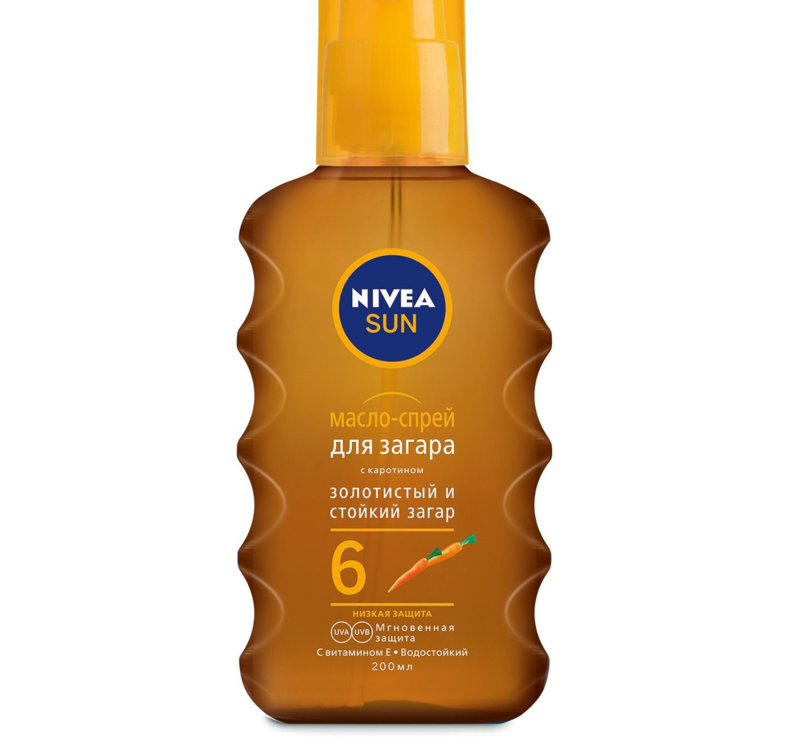 | #3 | | Nivea Sun масло-спрей для загара SPF 6 с каротином | 4.85 / 5 | |