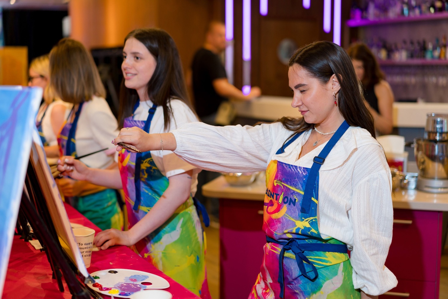 Гости рисуют картину, работают с текстурой или цветом и забирают готовую работу домой.