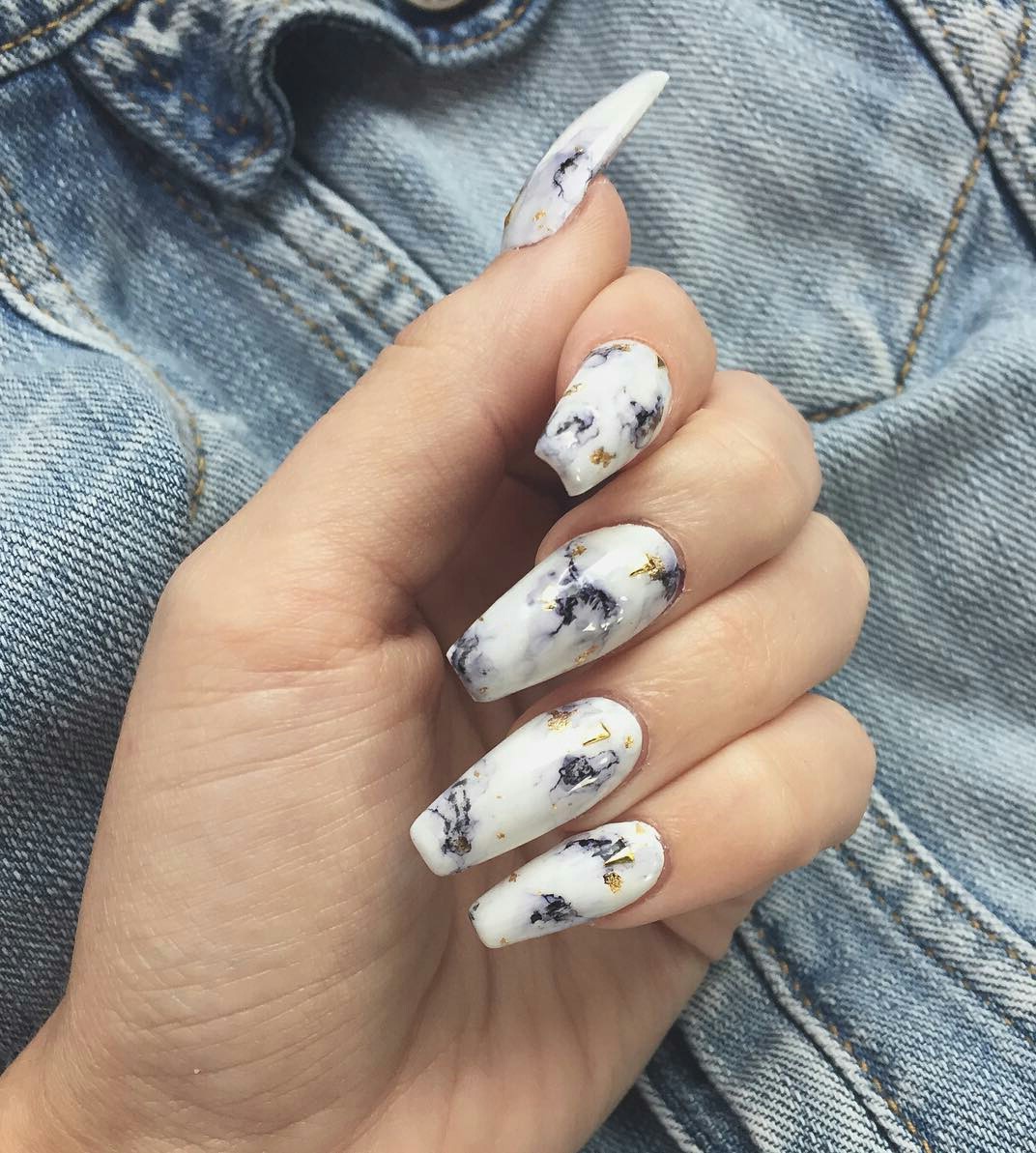 Использование сусального золота для нейл-арта тоже создает мраморный эффект в маникюре.
