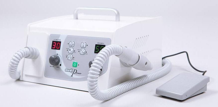 Профессиональный аппарат для педикюра, оборудованный встроенным пылесосом.