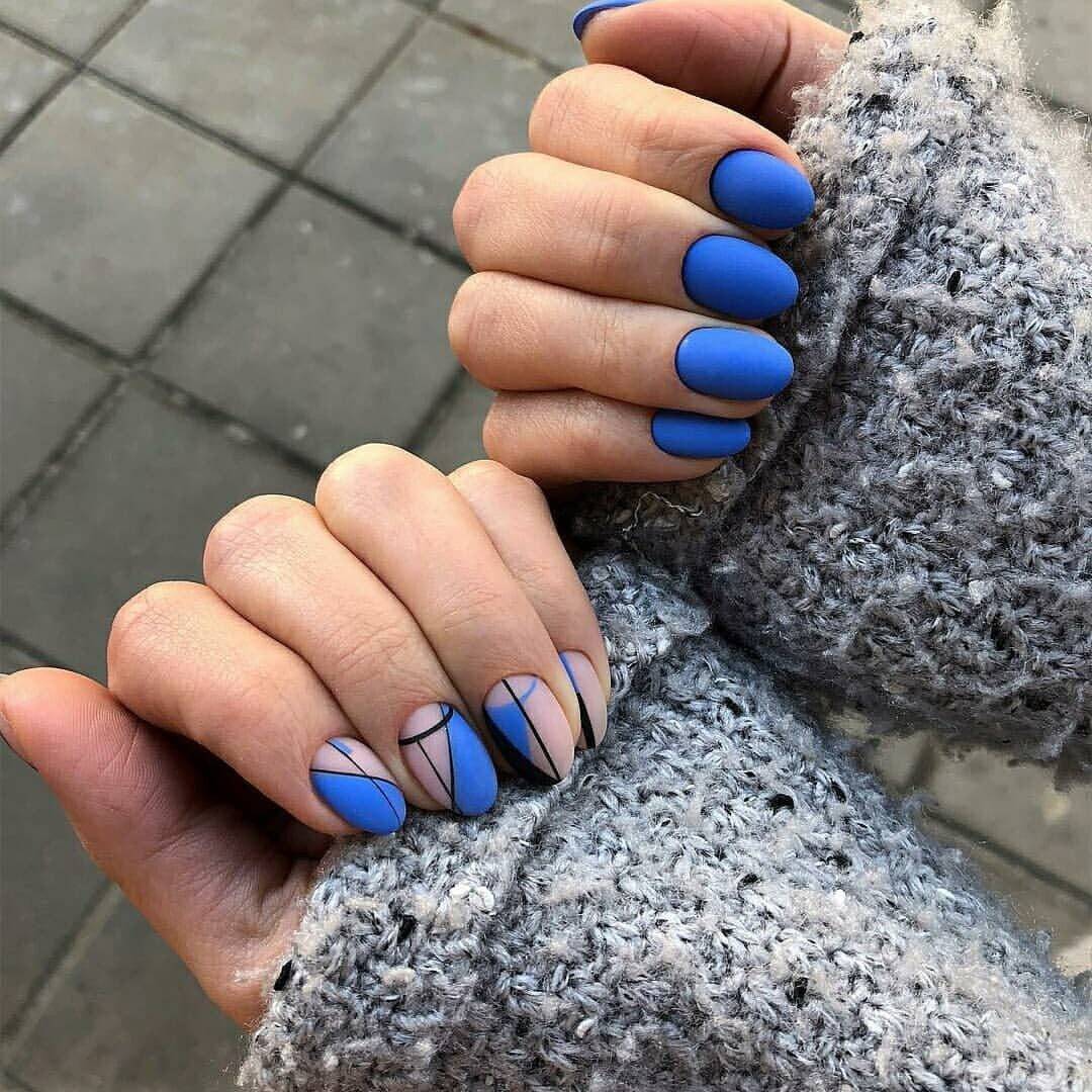 Ульра-синий матовый маникюр: красивая простая абстракция.