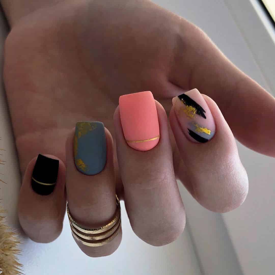 Еще матовый маникюр может быть способом самовыражения, когда хочется показать миру свою исключительность и индивидуальность. Украсьте каждый ноготок разным цветом, нанесите легкие штрихи или покройте ногти фольгой. Все эти действия помогут вам сделать такой маникюр, от которого завистницы будут локти кусать!