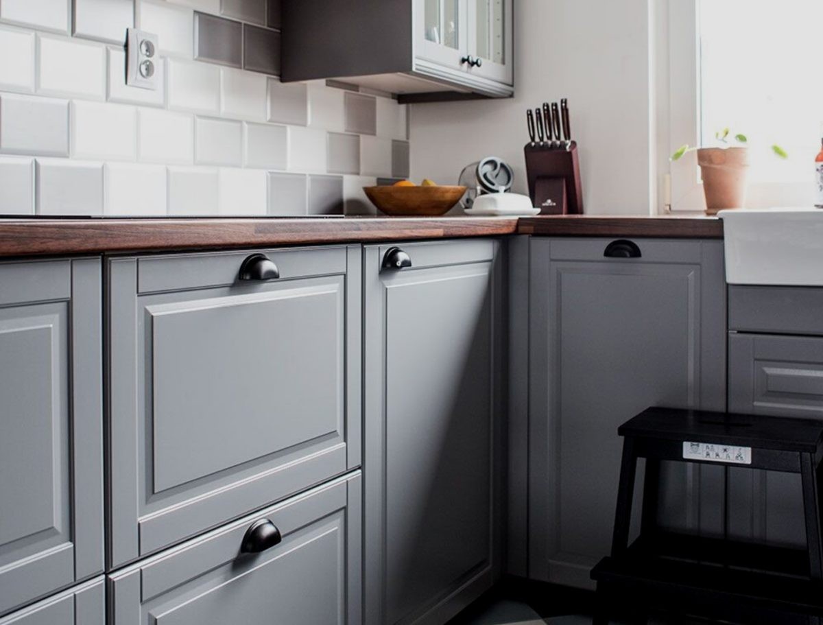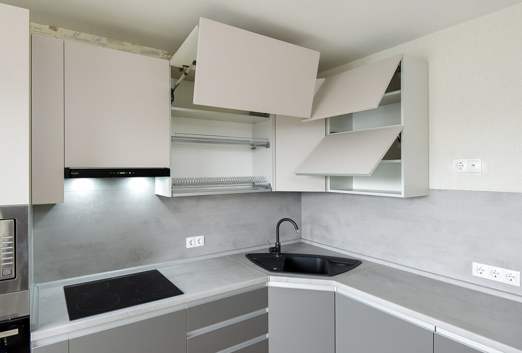 Матовые акриловые фасады защищают спрессованную стружку. Акриловая панель приклеивается к МДФ и защищает его от возгорания (может вспыхнуть при температуре от 160 градусов) и от разбухания (не деформируется от жидкостей). Кроме того, акрил не впитывает жир и грязь и не выгорает на солнце.
