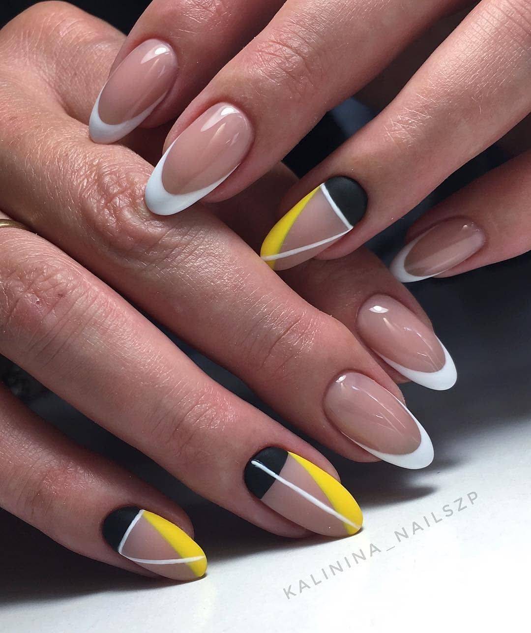 Миндалевидный маникюр и френч с геометрическим рисунком