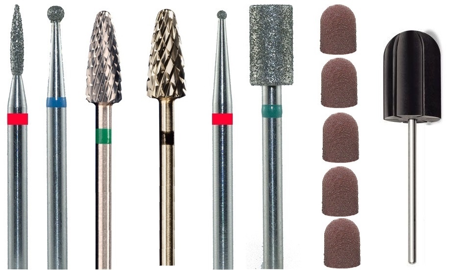 При покупке инструмента обратите внимание на его комплектацию. Самыми необходимыми и часто используемыми считаются: коническая, цилиндрическая, плоская, полировочная, для кутикулы, щеточка. материал изготовления насадок