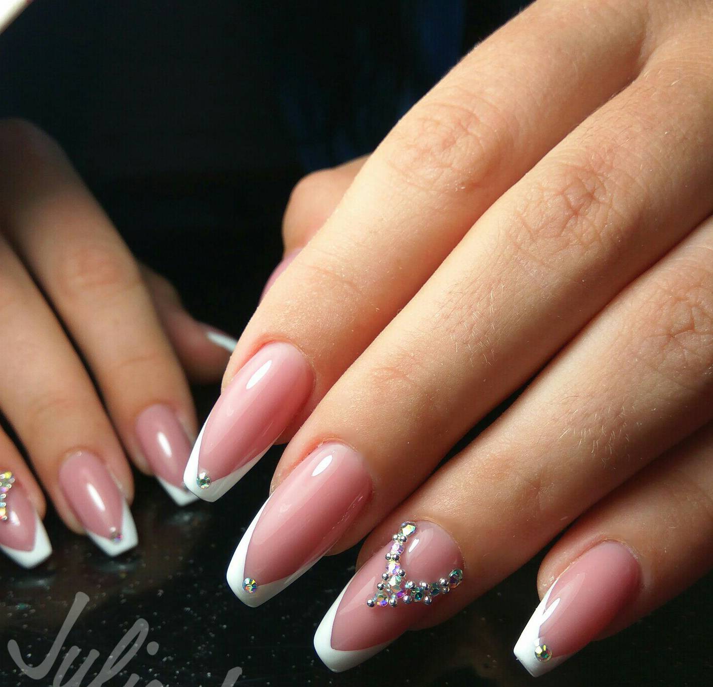 Чтобы не прорисовывать линию улыбки и не мучиться с четким стыком, используй выкладную технику. Французский маникюр в этом случае получается у всех.