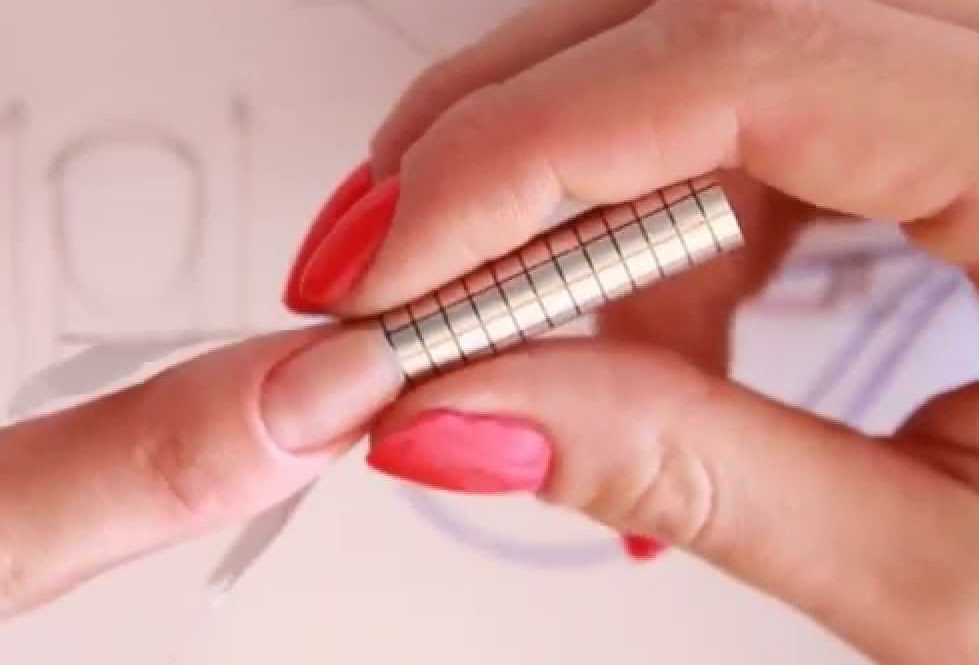 Пластины фиксируются особыми тисками, с помощью которых формируется необходимый силуэт ногтя;