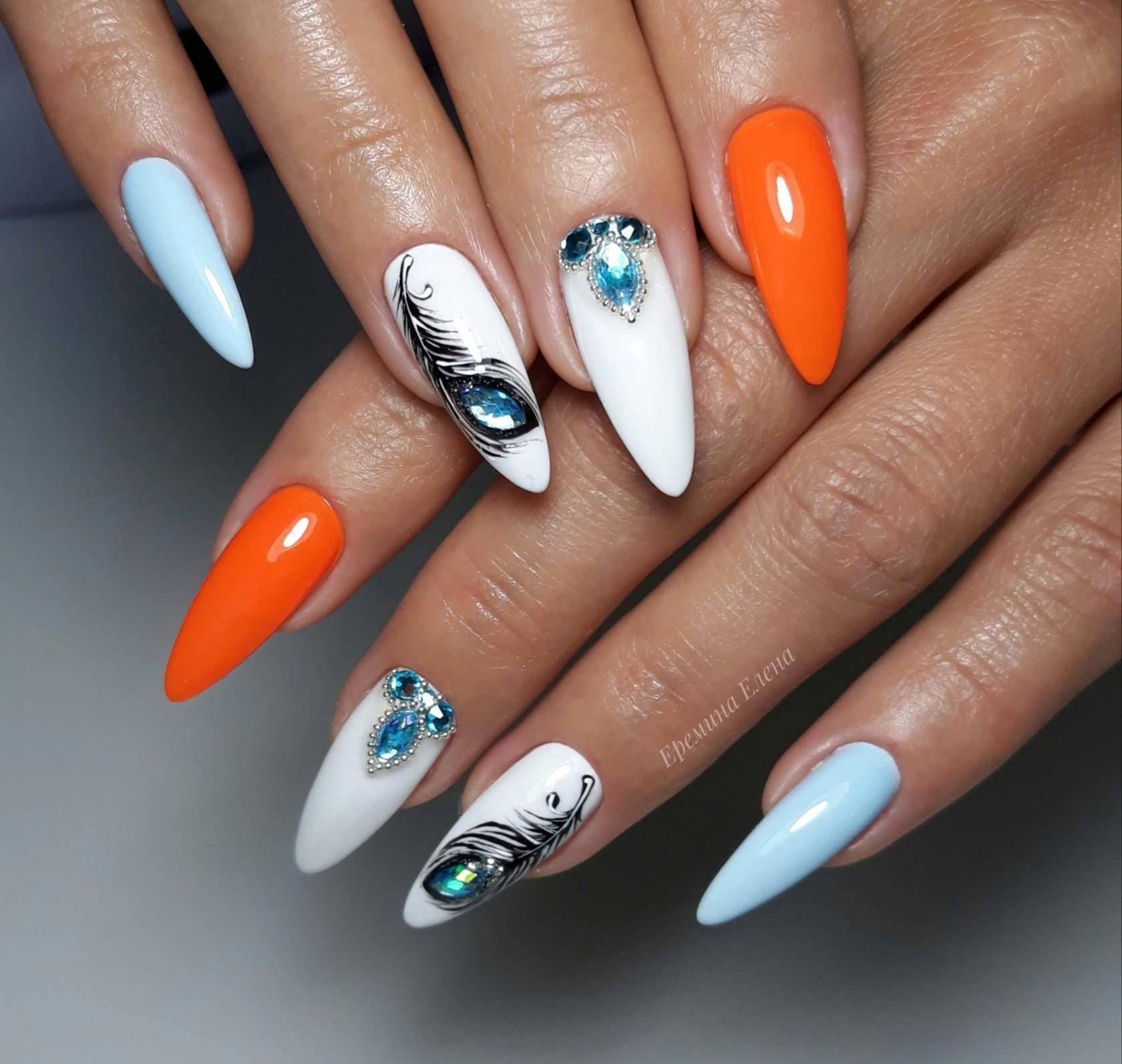 Белый с кислотными оттенками. Кислотные цвета – это тренд сезона не только в одежде, но и в маникюре