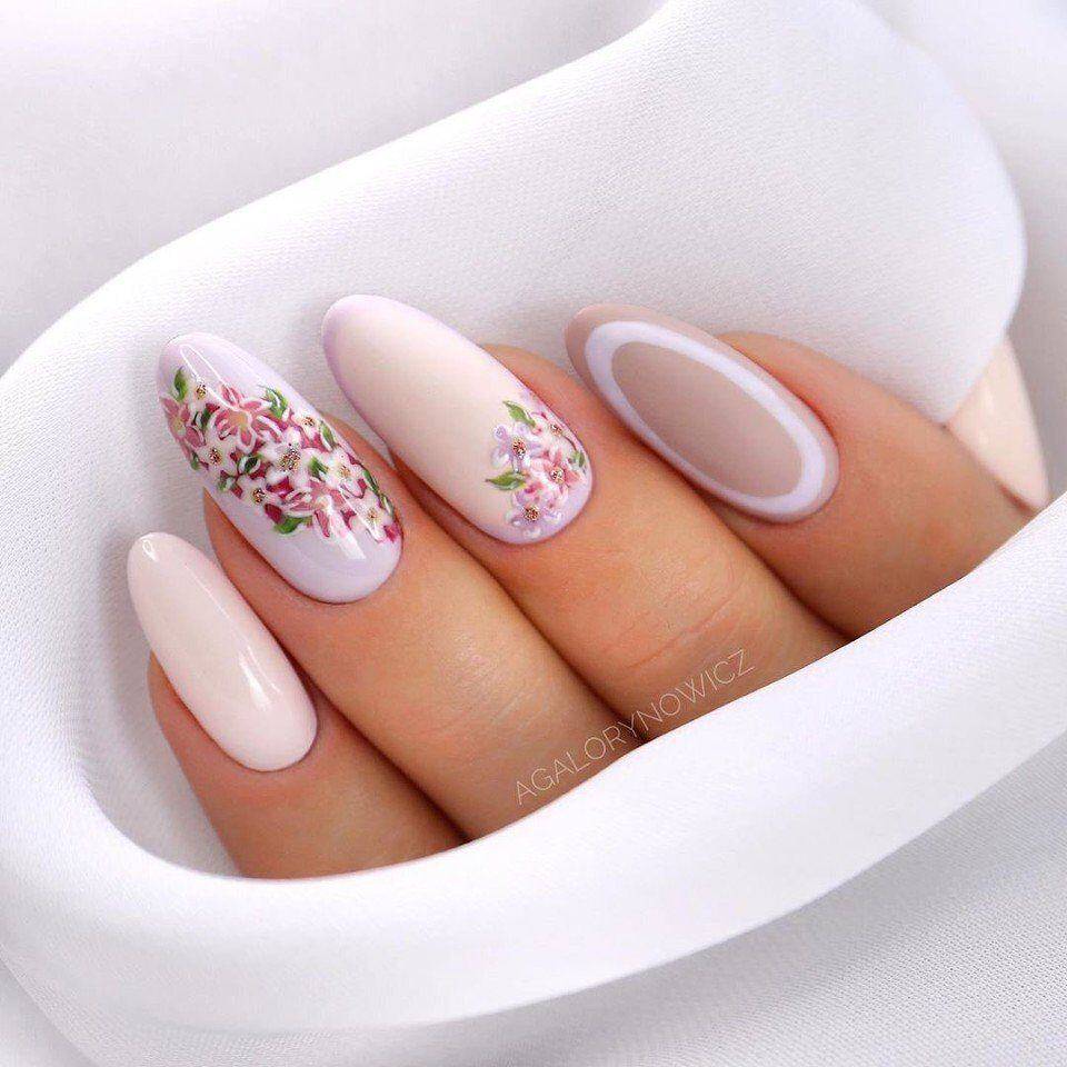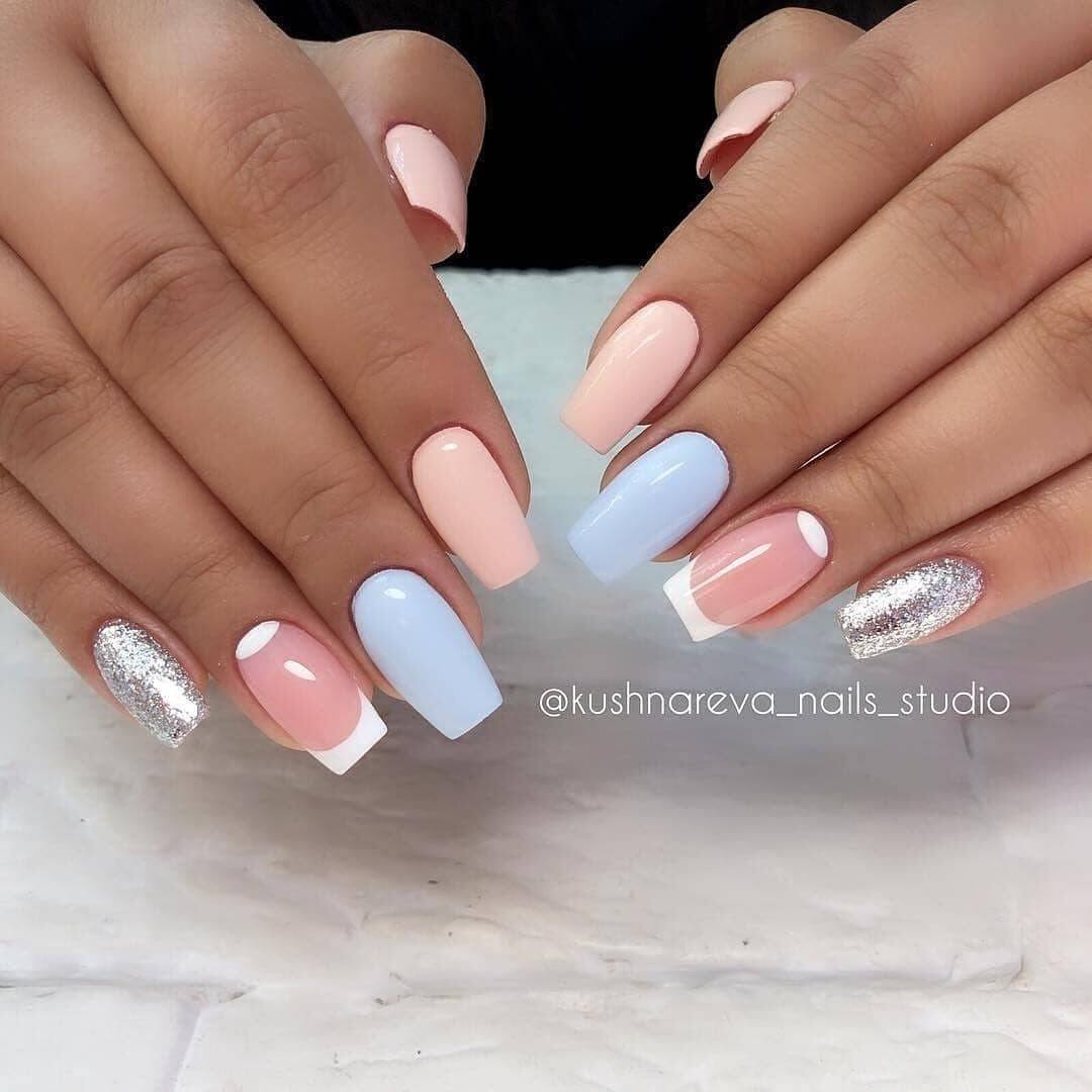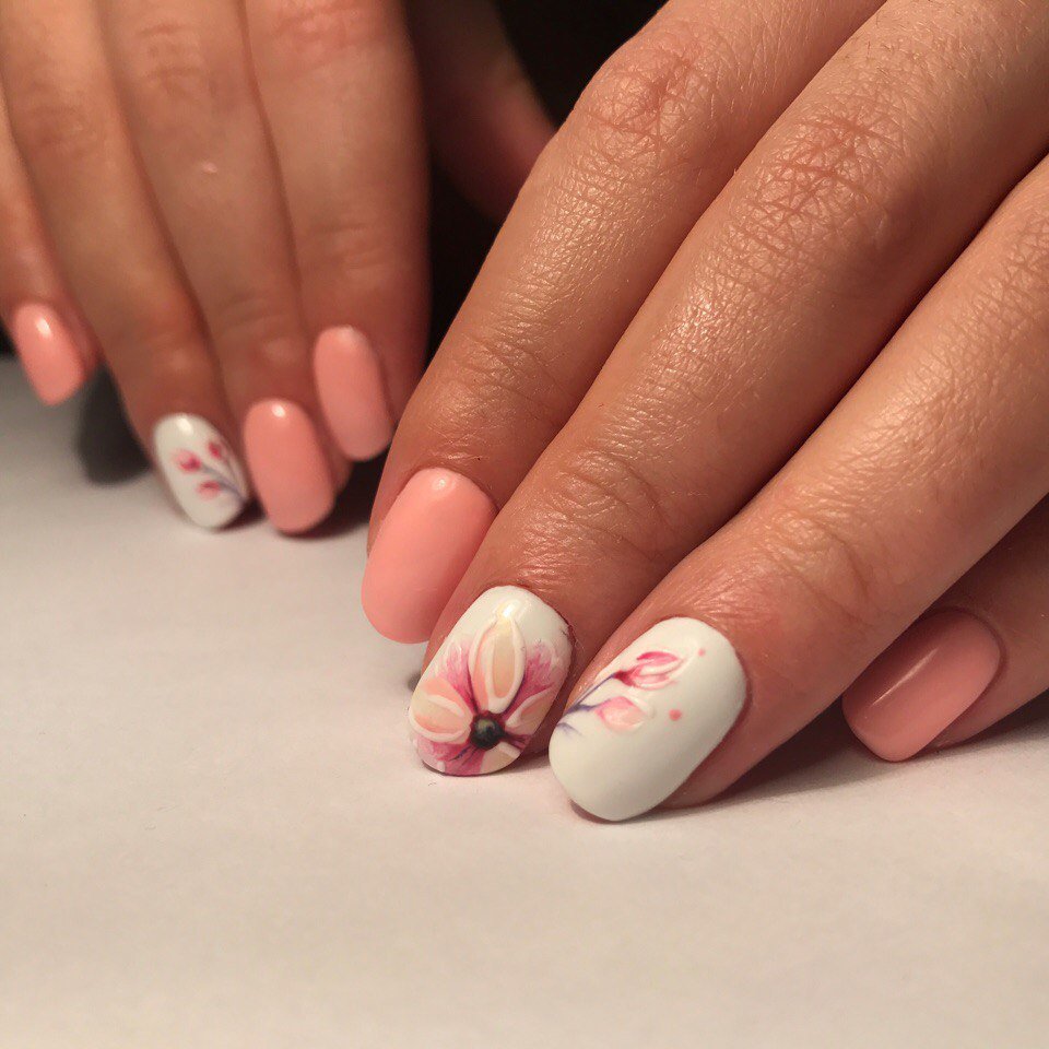 Белый в сочетании с другими нейтральными оттенками, например, с бежевым, персиковым, серым или пудровым сделает дизайн ногтей более романтичным и нежным. Оформление здесь может быть любым. Чаще всего девушки предпочитают покрыть все ноготки разными цветами.
