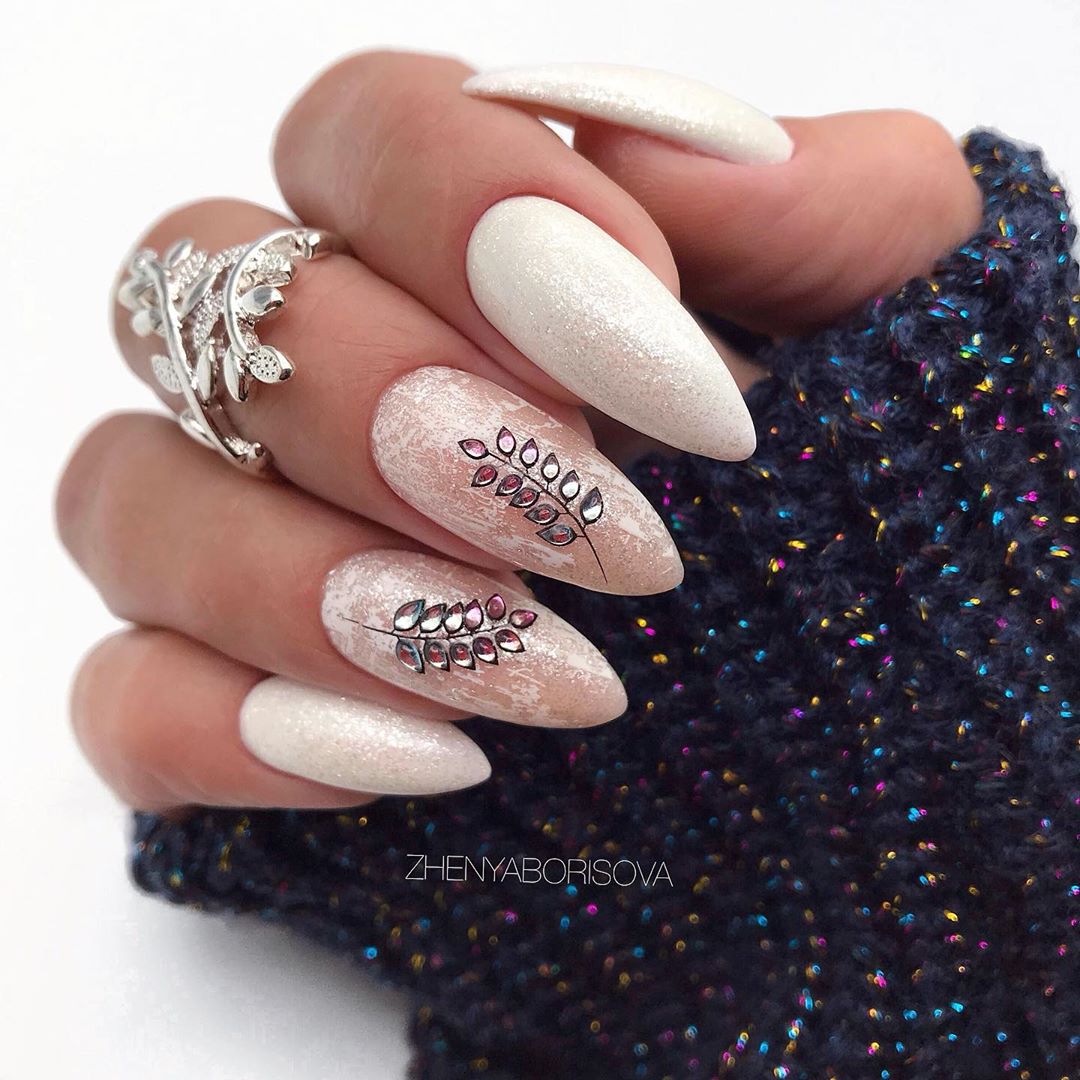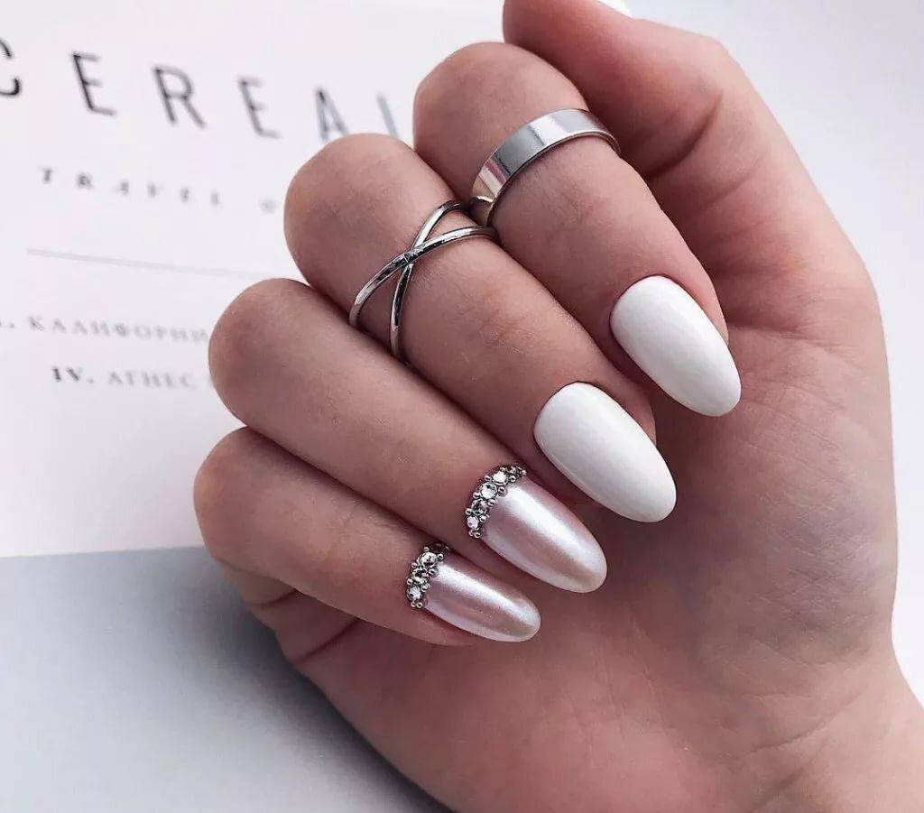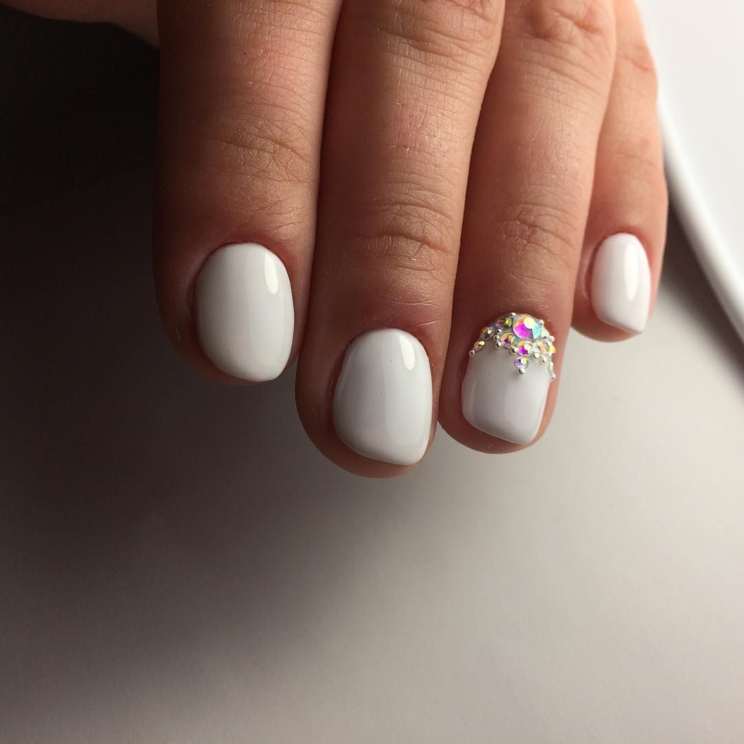Белые ногти: новинки маникюра со стразами и изящными блесточками