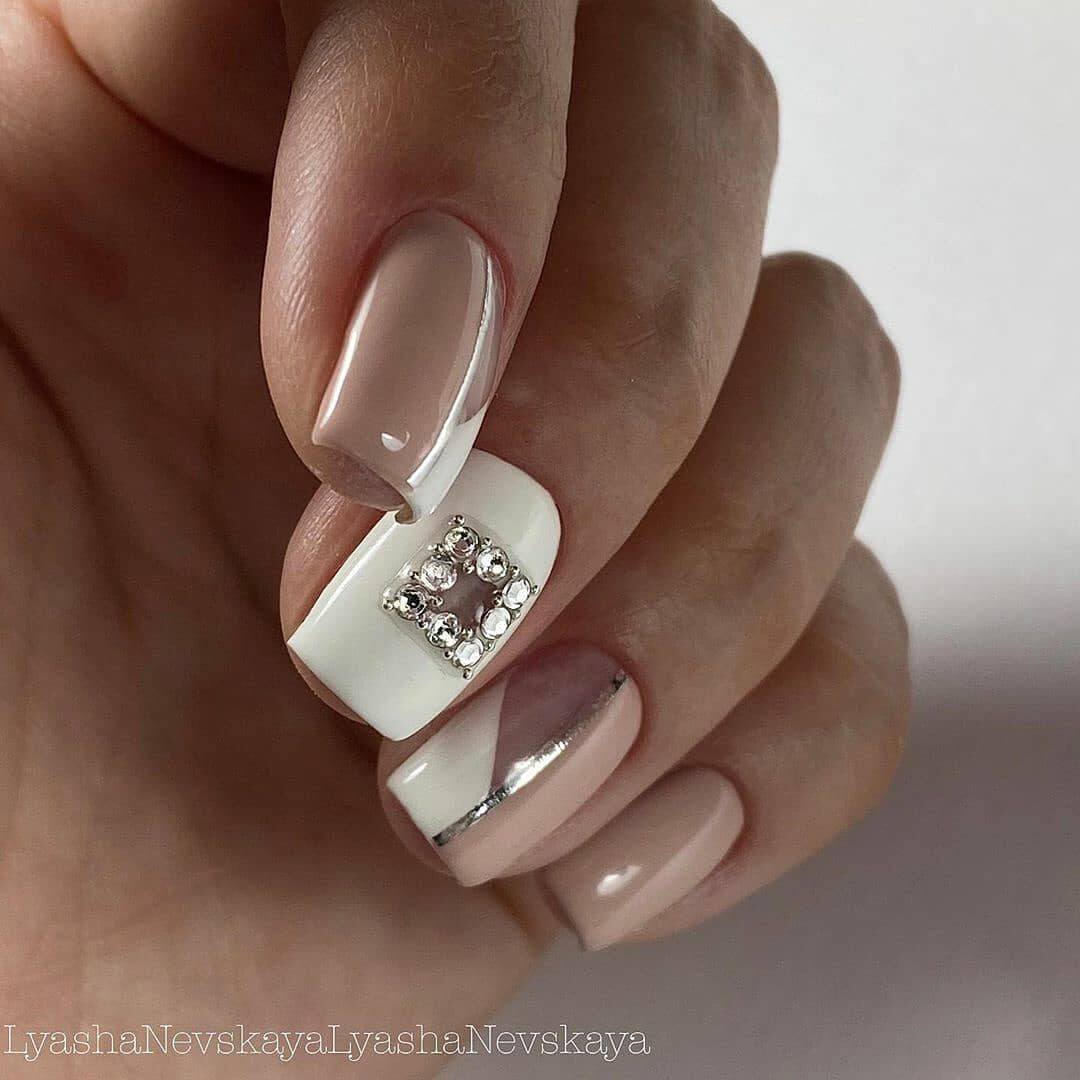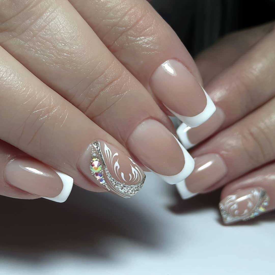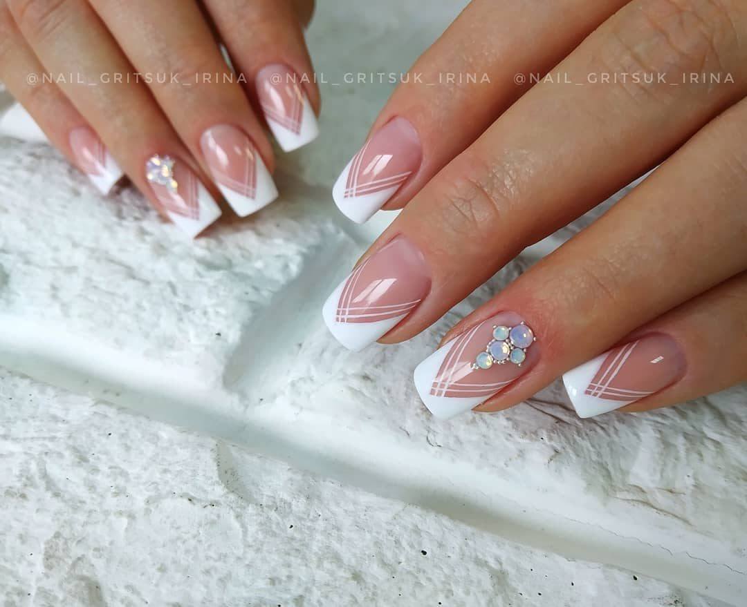Белые ногти: новинки маникюра со стразами и изящными блесточками