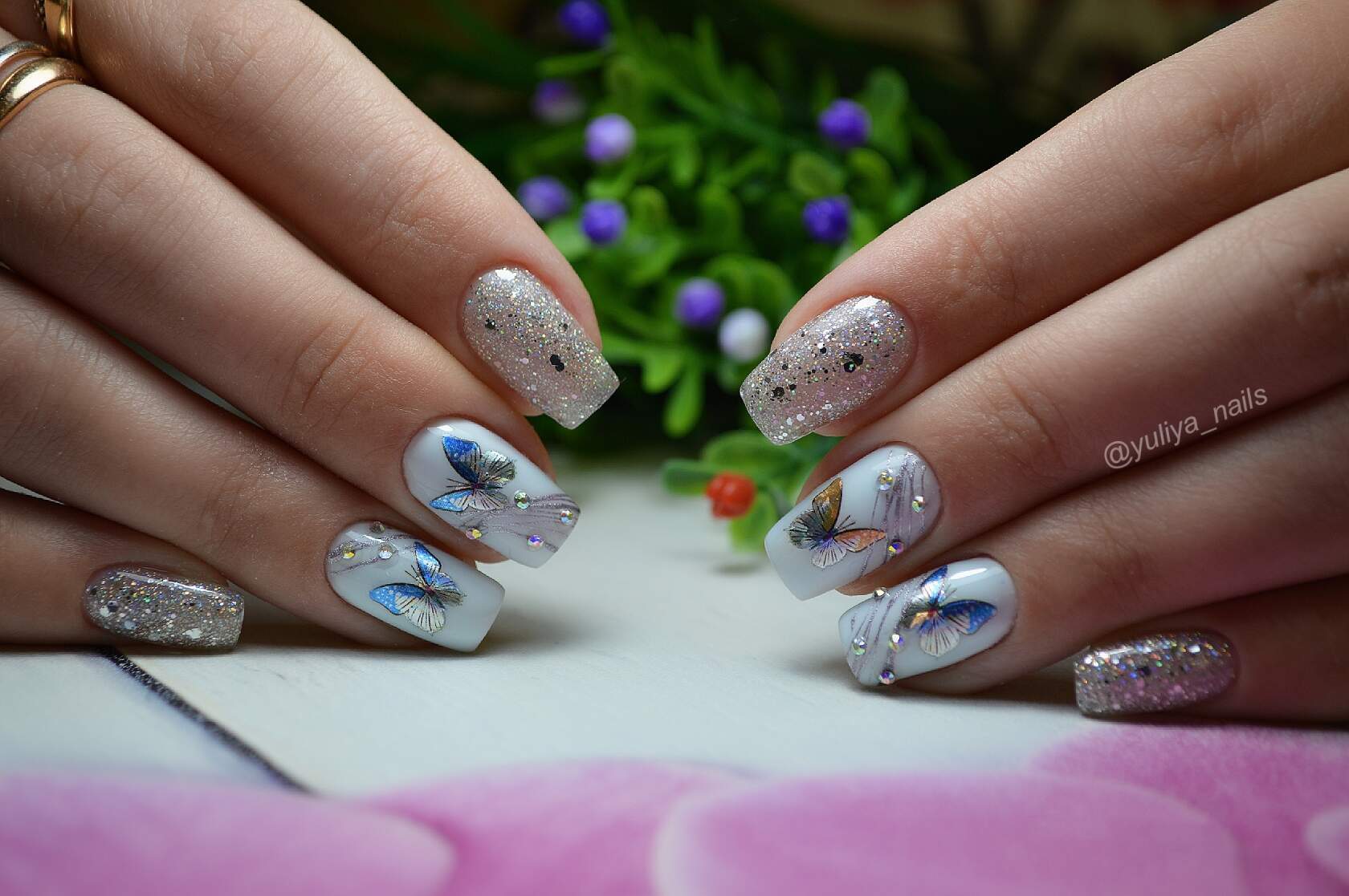 Белый маникюр с блестками 2020: актуальные идеи и сочетания