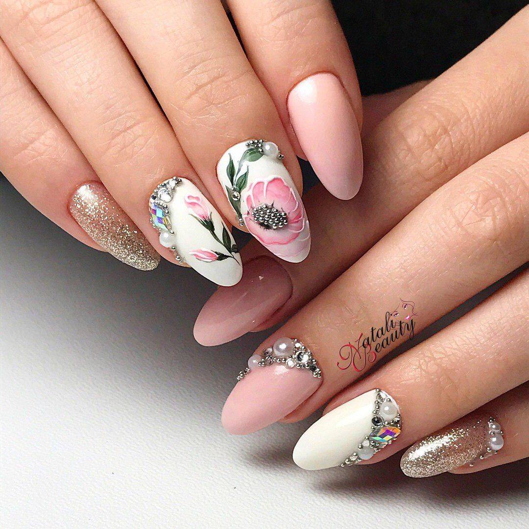 Любой самый необычный и креативный дизайн можно воплотить на прекрасной модной, стильной и трендовой форме ногтей, как миндаль. Миндальный маникюр со стразами – выбор красивых и элегантных девушек и женщин с отличным чувством вкуса.