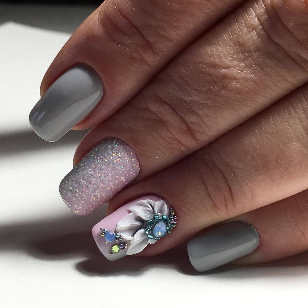 Чтобы создать великолепный дизайн с лепниной совсем не обязательно выполнять сложный и слишком объемный декор. Достаточно разместить на ногтях несколько аккуратных цветов или бутонов, которые будут лишь дополнять основной дизайн. На фото вы можете видеть несколько идей маникюра с лепниной. Именно так должен выглядеть дизайн, чтобы он гарантированно вписался в ваш торжественный и возможно повседневный образ.