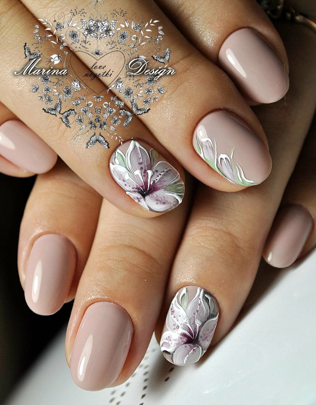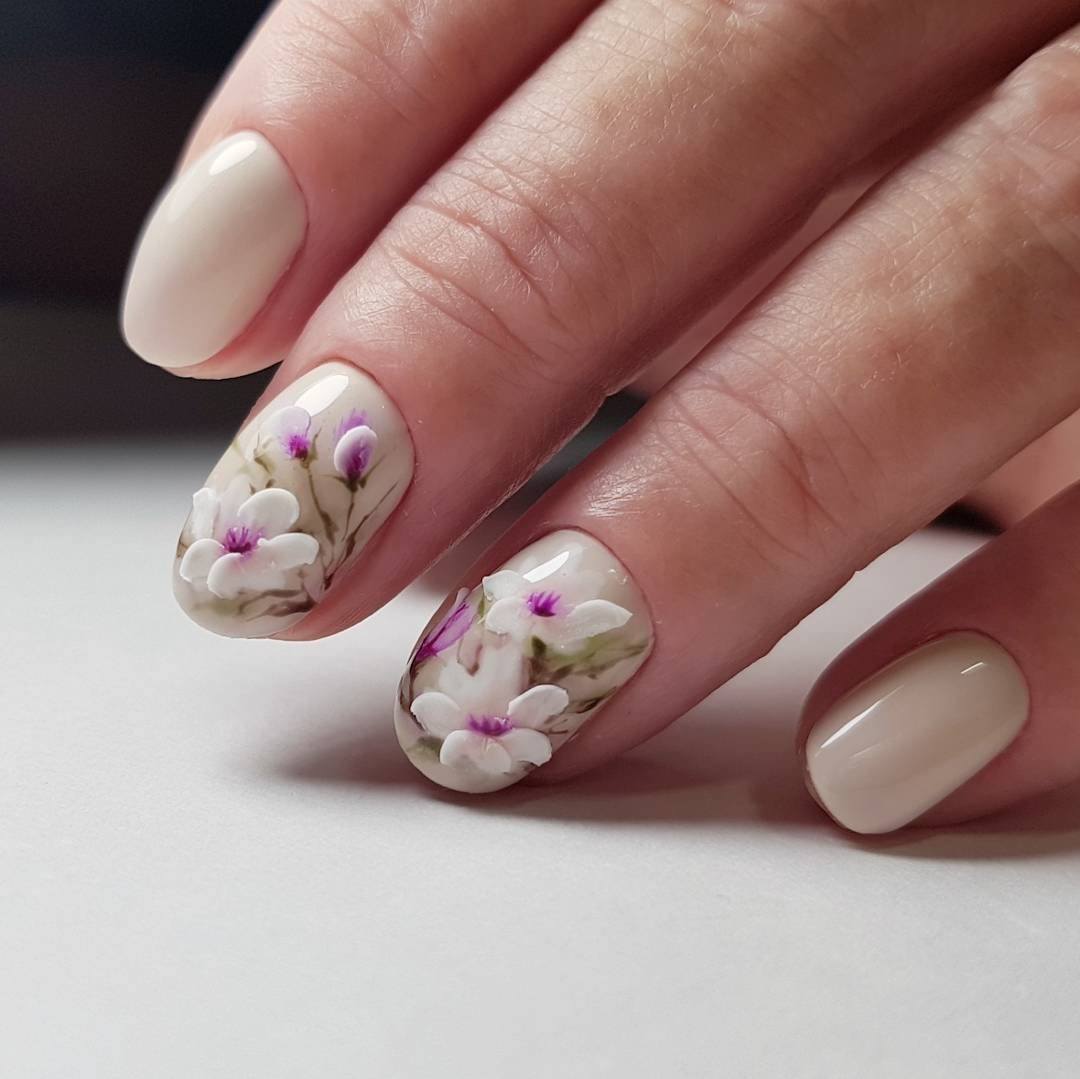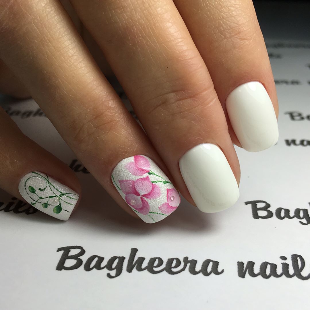 Белые цветы на ногтях выглядят очень благородно и элегантно. Если вы хотите, чтобы маникюр гармонично вписывался в ваш образ, то дополните его белой флористикой. Разнообразие цветов по-настоящему огромно. Это могут быть розы, мелкие полевые цветы, нежные орхидеи, тюльпаны, ромашки и т.д.
