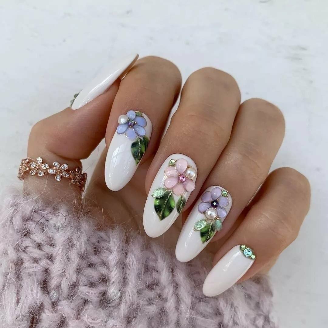 Что касается оформления ногтей белым цветов, то можно сказать, что такой дизайн может стать достаточно интересным, если при его создании подключить фантазию и воображение.