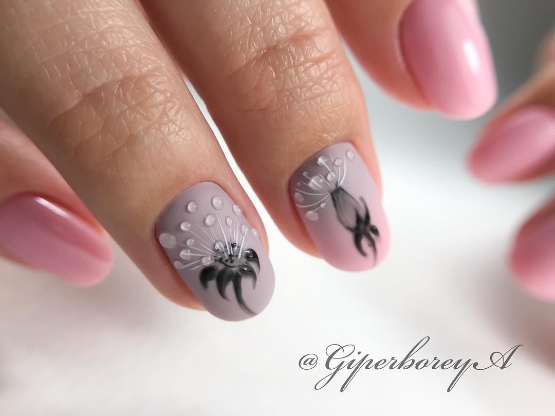 Очень интересно смотрится полностью матовый маникюр, причем один или два ноготка могут быть окрашены в другой цвет.