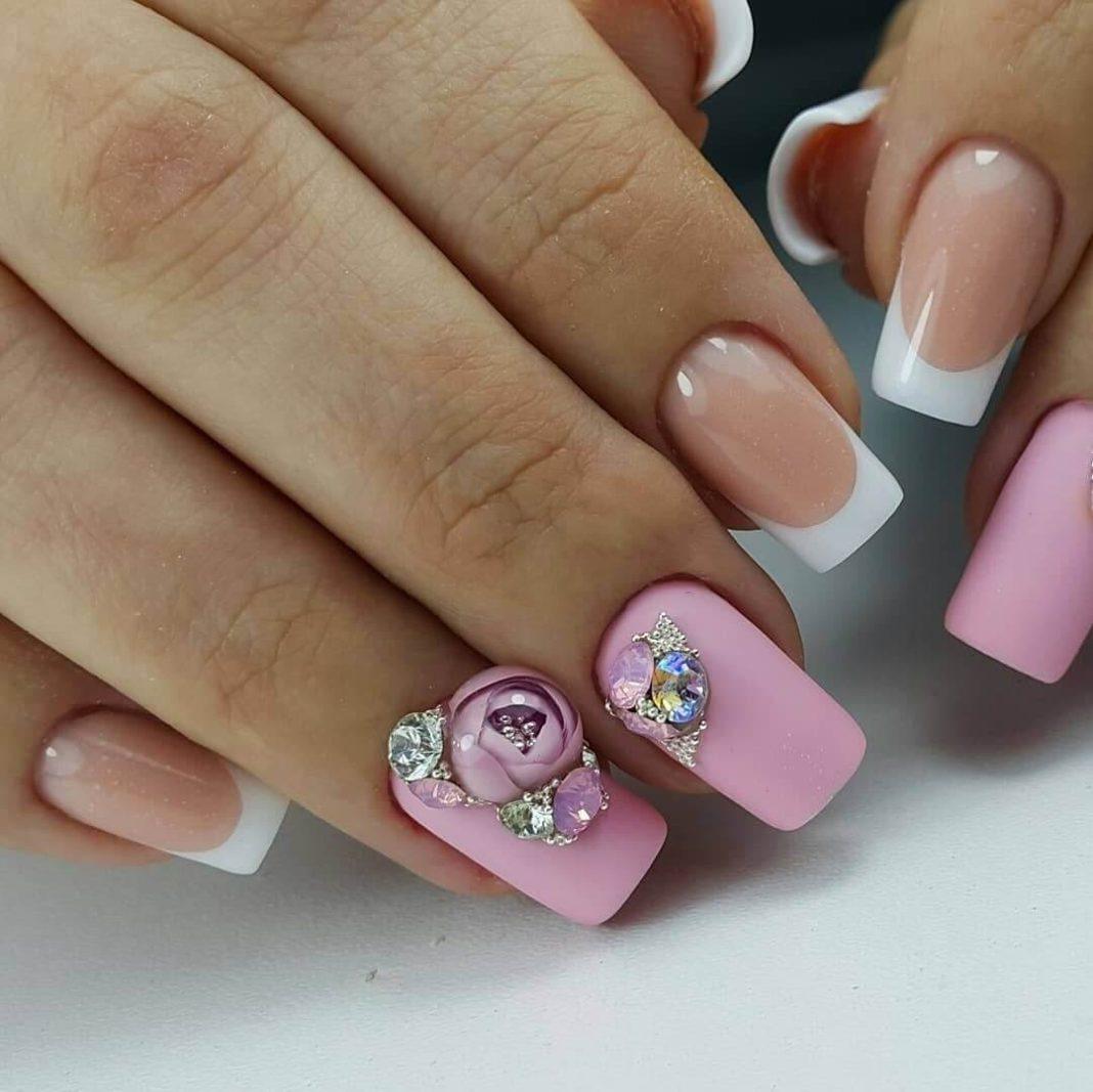Белый маникюр с розовым – это классика. Именно такое сочетание цветов чаще всего выбираю невесты, а также девушки ля создания повседневного образа.