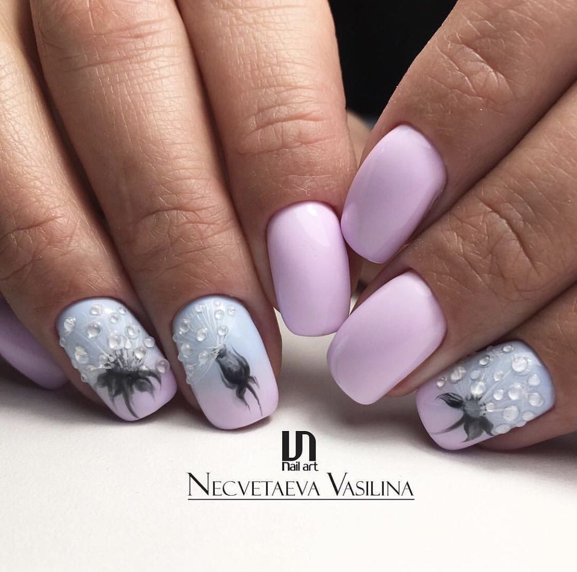 Это идеальный вариант для короткого квадрата. Особенно эффектно смотрятся матовые ноготки в холодной гамме. Здесь можно рассмотреть варианты дизайна — контрастная вуаль, втирка или фольга. А вот перегружать стразами или 3d декором такой маникюр не стоит.
