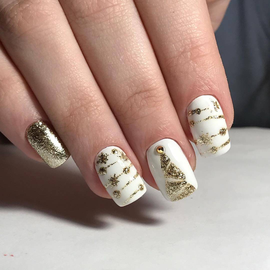 Белый цвет, наряду с красным, отлично смотрится в новогоднем дизайне. Если яркие оттенки не для вас, то вы сможете с успехом использовать молочный оттенок для декорирования ногтей. Однотонный дизайн тут уже неуместен, он смотрится повседневно.