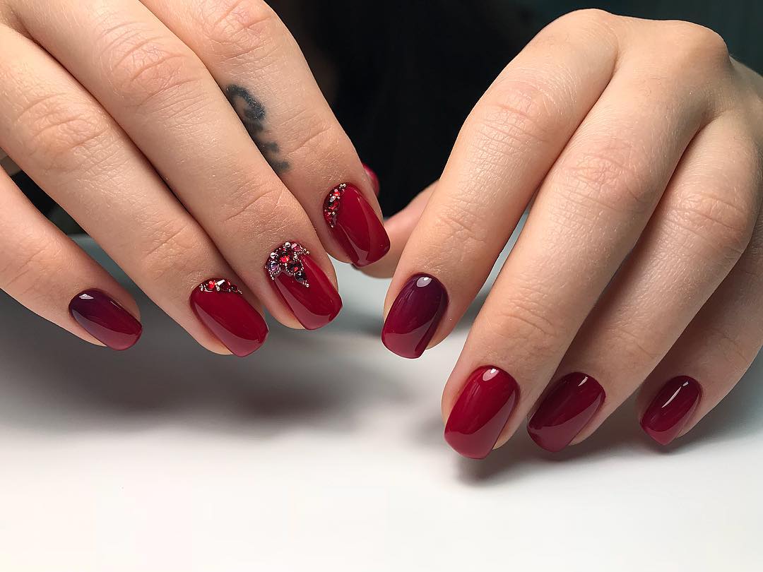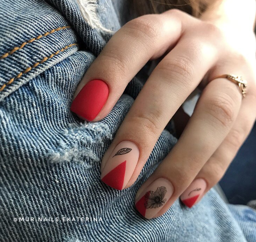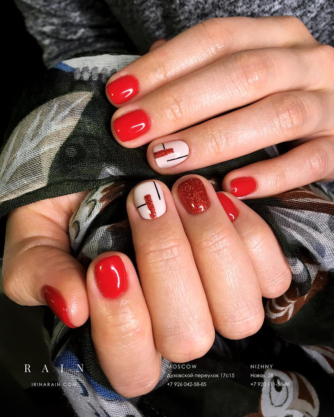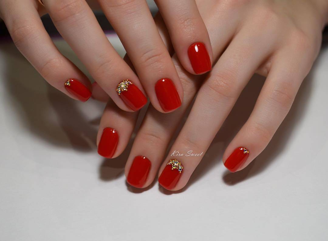 Если вы уверены, что такой нейл-арт подходит только для длинных ногтей, вы глубоко заблуждаетесь. На коротких ноготках красный смотрится не менее шикарно.