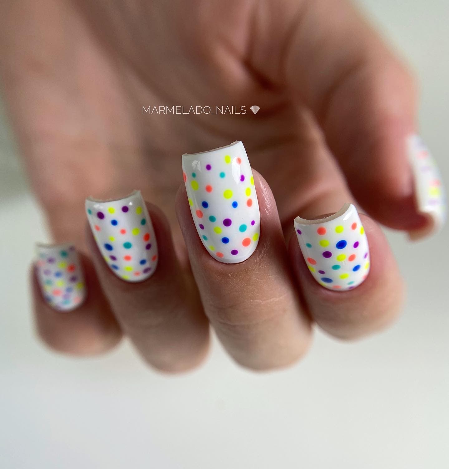 Белый с кислотными оттенками. Кислотные цвета – это тренд сезона не только в одежде, но и в маникюре
