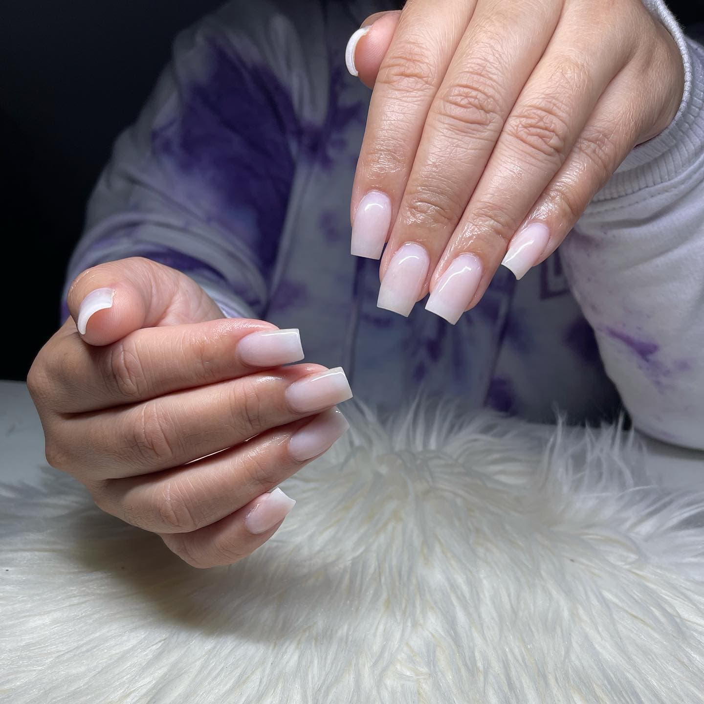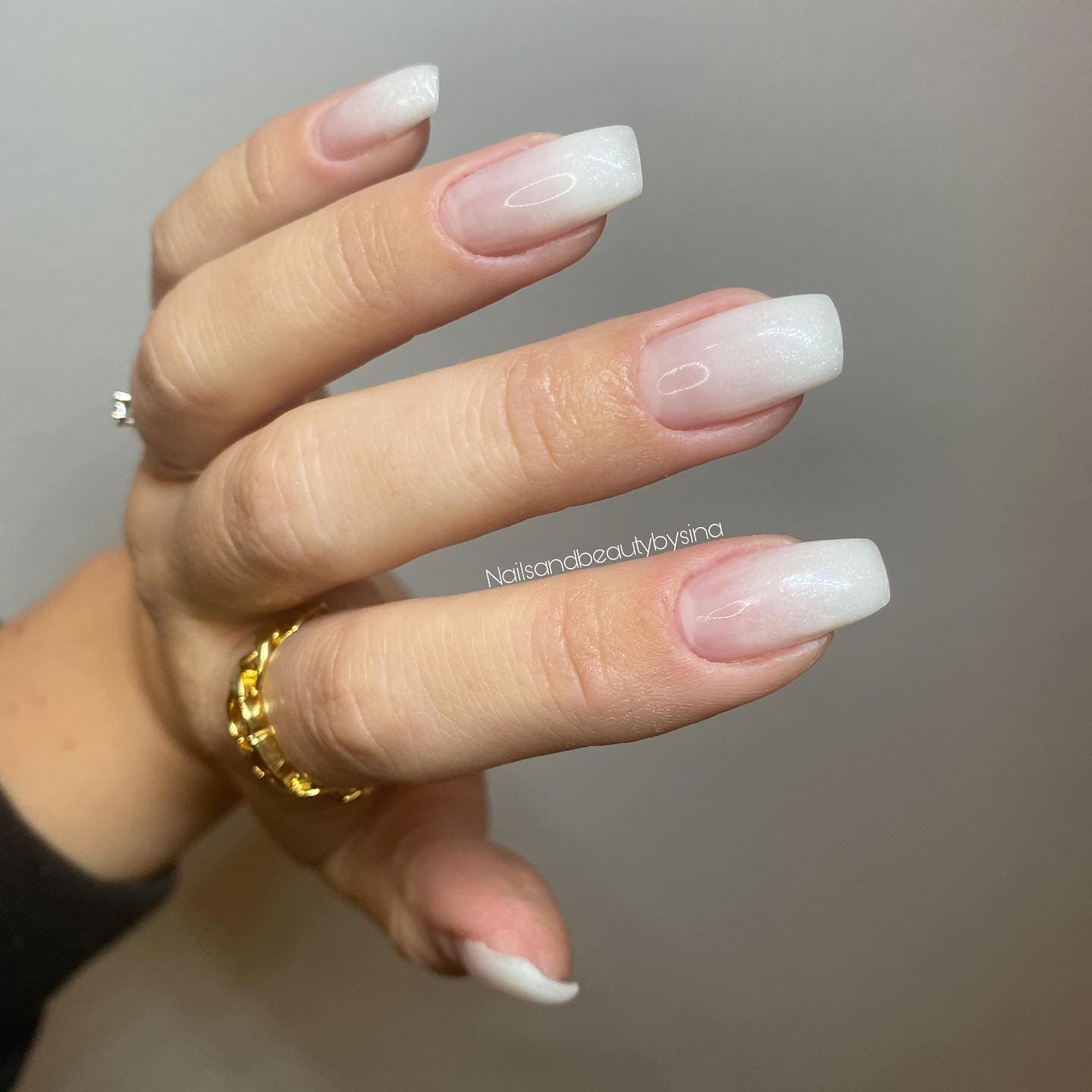 Градиент снова набирает популярность. Baby Boomer – омбре из бежевого в белоснежный, но уже в другом исполнении. Цветные варианты также приемлемы. Чем короче свободный край, тем светлее должны быть тона.