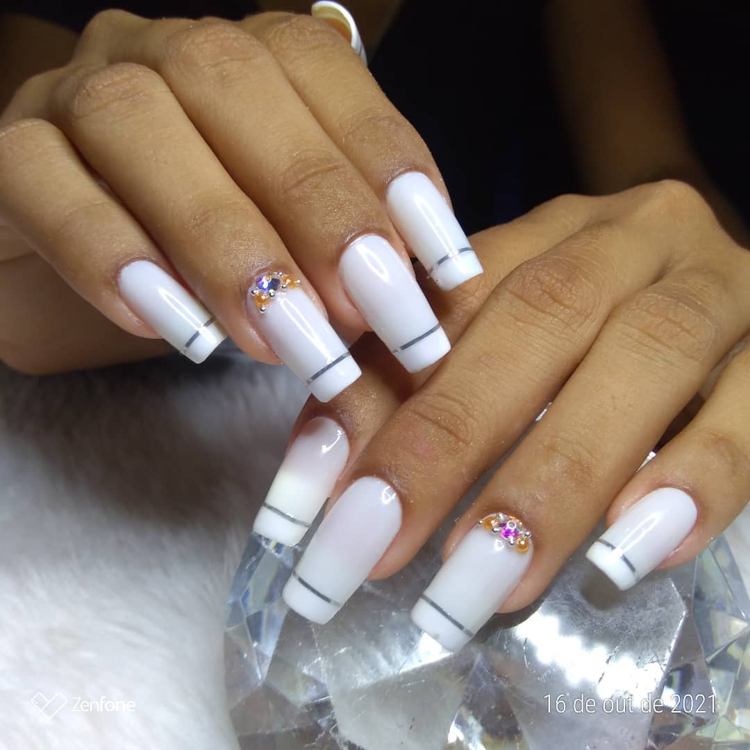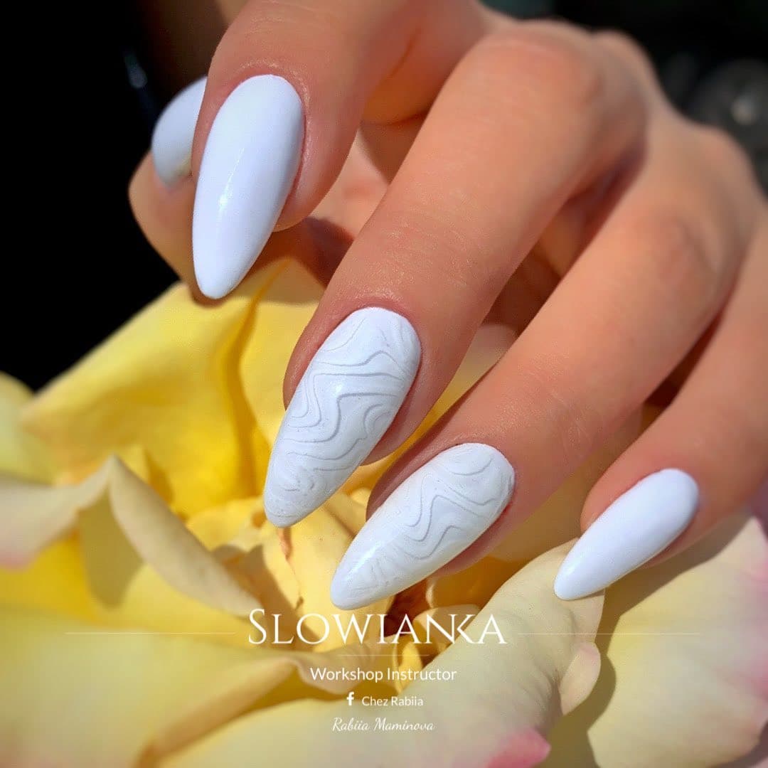 Белые оттенки идут любой форме и длине ноготков. Конечно, есть и свои небольшие нюансы, которые стоит учитывать. Тем не менее, основное преимущество белых лаков для маникюра — визуальное удлинение пластины.