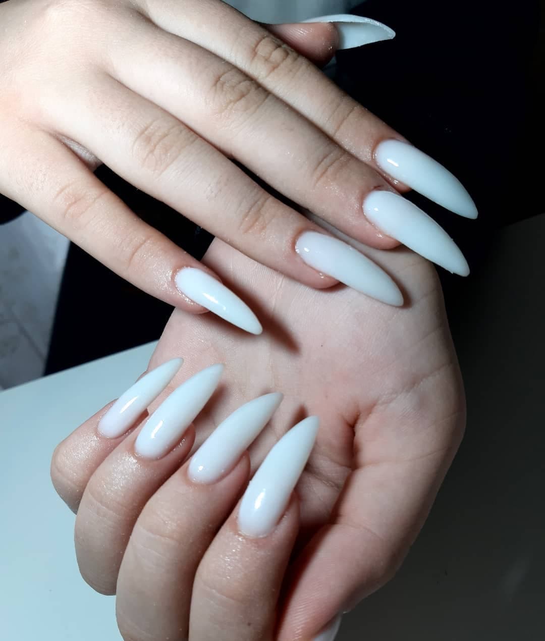 Напоследок, ногти всегда можно нарастить у мастера. Конечно, этот вариант может быть многим не по карману, особенно на постоянной основе. Но это отличное решение, если душа просит белый маникюр острой формы, а ты не хочешь ждать.
