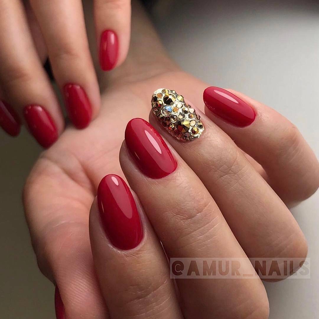 Те девушки, которые считают однотонные нейл-арты банальными и визуально пустыми, рекомендуется добавить в маникюр стразы, бульонки и другой блестящий декор. Выбирайте для дизайна серебряные и золотые стразы, камни разного размера и текстуры.