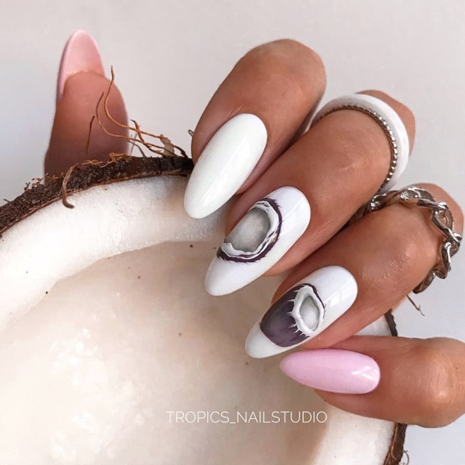 Чаще всего данные оттенки сочетаются либо в омбре, либо ими выборочно покрывают несколько ноготков. Основной цвет, в таком случае, остается белый.