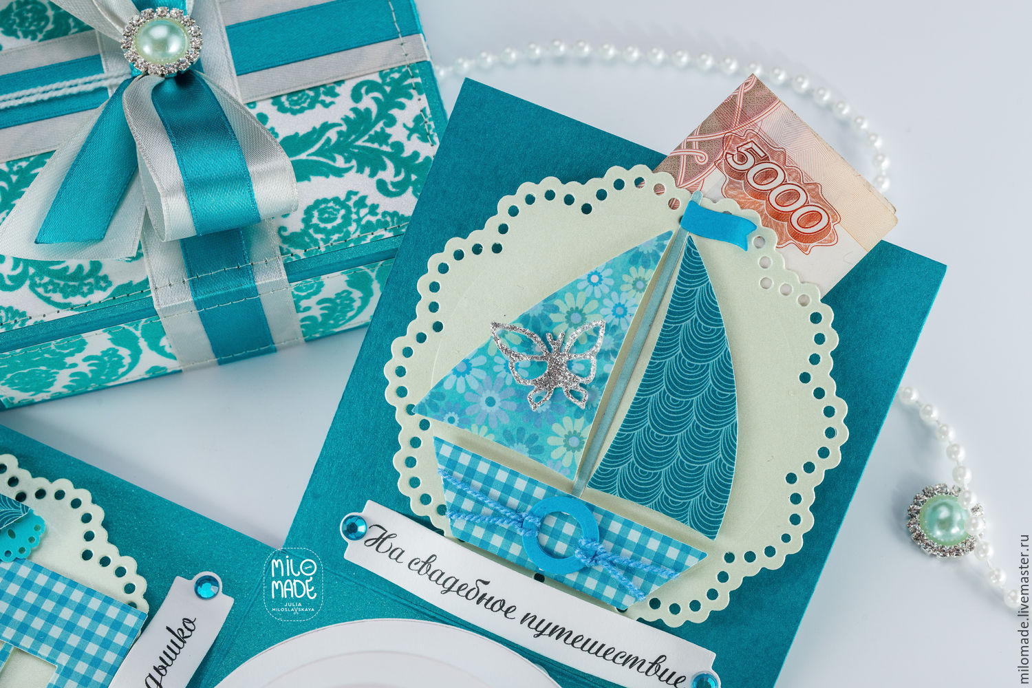 - Стоит подумать и о том, чтобы не брать бумагу белоснежного или же голубоватого оттенка, а лучше отдать предпочтение кремовым листам, к примеру, в бирюзовых конвертиках, оформленных кремовыми лентами, кружевом, бантами и так далее.