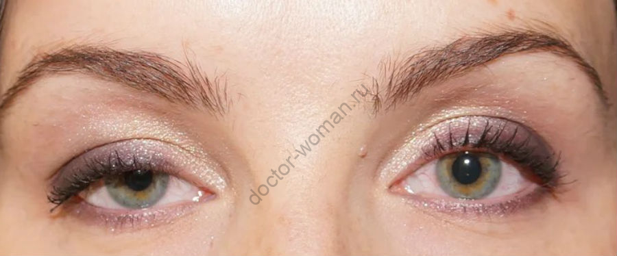 Кроме того, очень важно приподнять надбровья, чтобы верхние веки и брови не «придавливали» глаза. Делается всего две инъекции в правильные точки (у уголка брови и в центр переносицы) – и ваши глаза более открыто и без усталости смотрят на мир