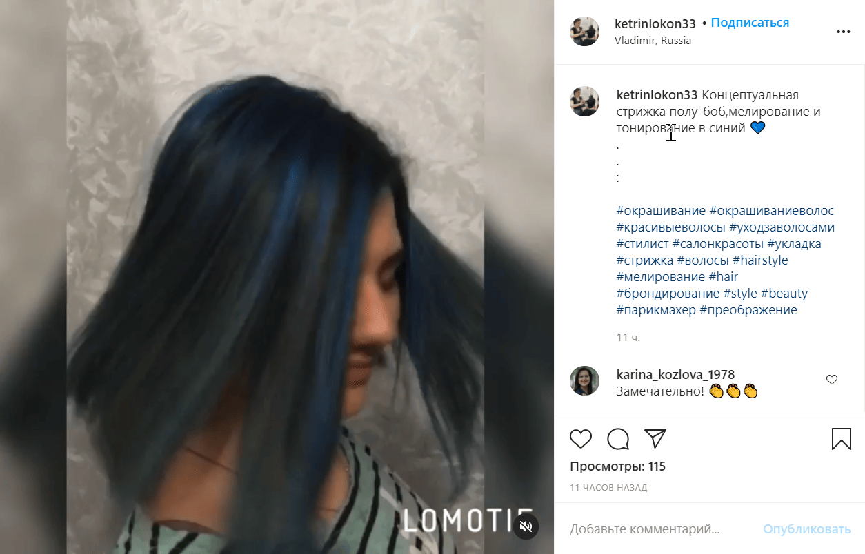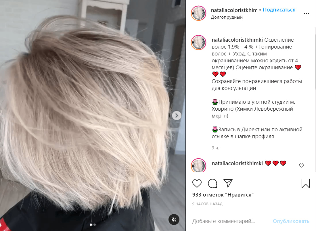 Нагляднее фотографий только видео ваших работ — сами по себе или в формате «до / после». Покажите, как прическа выглядит с разных сторон, как ведут себя волосы в движении, как довольно улыбается клиентка. Состояние до процедуры часто показывают фотографией или коротким видеофрагментом в конце ролика.