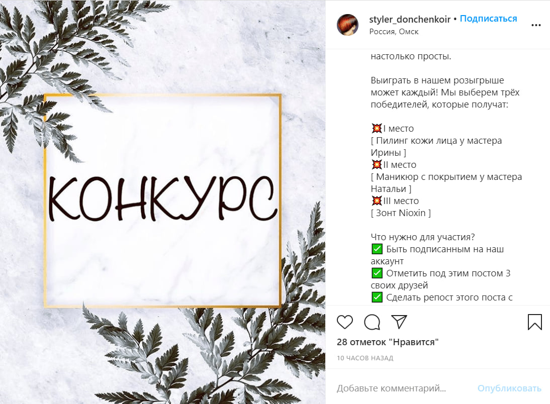 Если салонные процедуры кажутся вам слишком дорогим подарком, можно выбрать что-то другое, главное чтобы это было полезным и желанным для ваших подписчиков.
