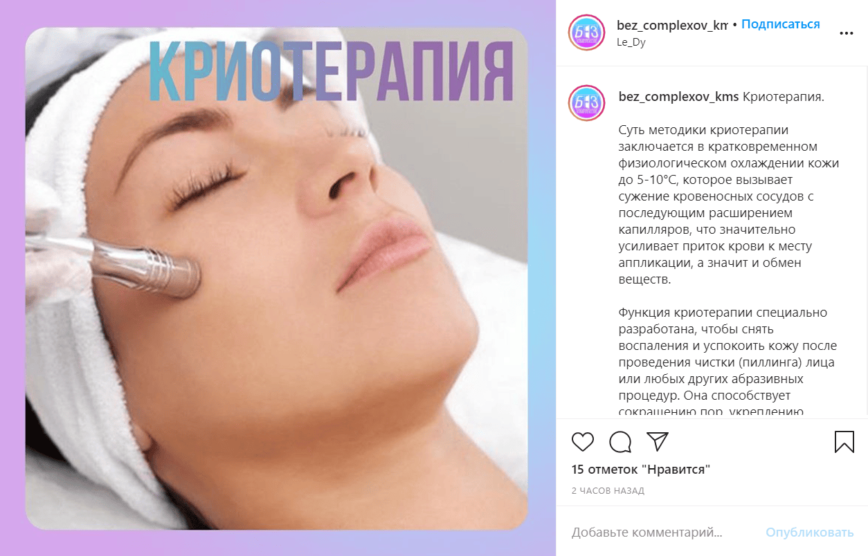 Некоторым новым или особо сложным процедурам можно посвятить большой пост и отдельное видео на IGTV. Так клиенты смогут подробно узнать и увидеть своими глазами, как все происходит. А значит — четко решить для себя, готовы ли они на такое пойти.