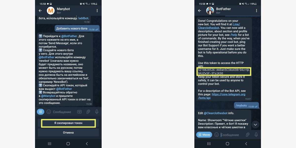 Что действительно важно, так это сохранить отправленный в ответ от папы-бота токен. Это уникальный ключ, обеспечивающий доступ к созданному помощнику