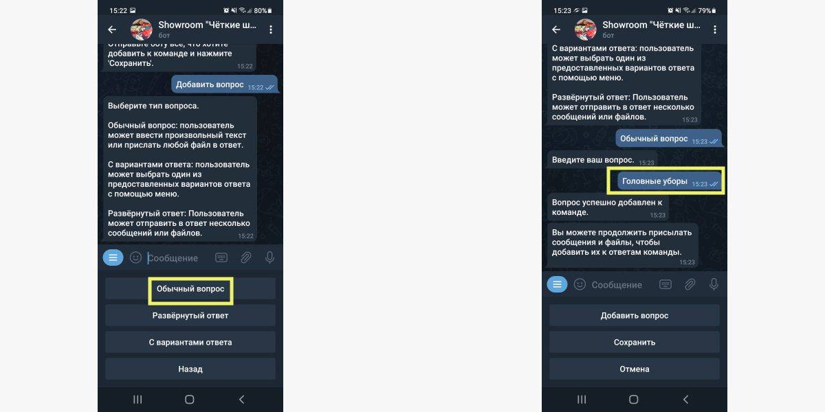 После запроса commands нужно нажать «Добавить вопрос» и выбрать вариант вопроса.