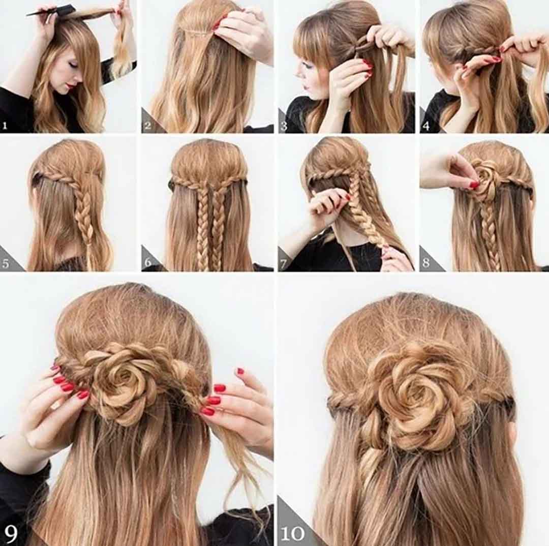 - Начните плести косу вокруг головы, с каждым шагом захватывая пряди сверху.