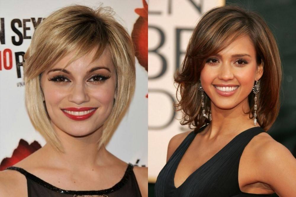 На фото и видео – стрижки с длинной челкой на бок, это оптимальный дизайн для круглолицых и полных девушек, обладательниц широкого квадратного лица: