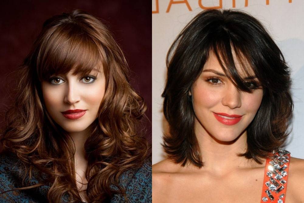 На темные, русые пряди и для правильной, овальной формы лица подойдут любого типа подстрижки с косой челкой (и с короткой, и с длинной).