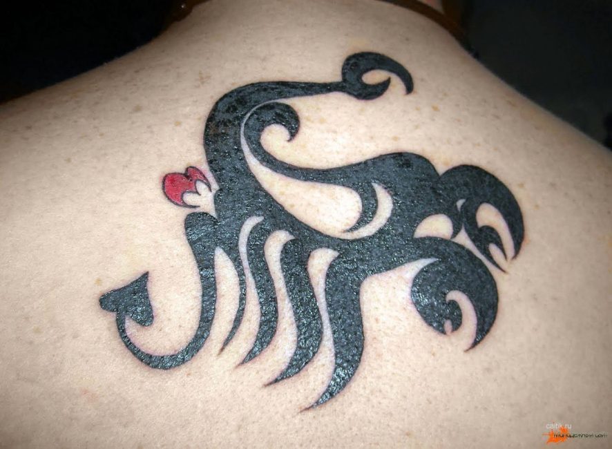 Треш-полька Еще один замечательный стиль для мужских татуировок. Он яркий, контрастный, насыщенный и дерзкий. Характерен сочетанием двух цветов — красного и черного. Изображения дополняются мазками, пятнами, точками, неаккуратными мазками, которые сделаны будто случайно. Для девушек такой стиль может быть грубоват, особенно, если речь идет об изображения скорпиона. А вот представителям сильной половины человечества эта татуировка будет как нельзя кстати.