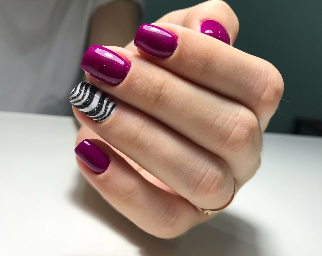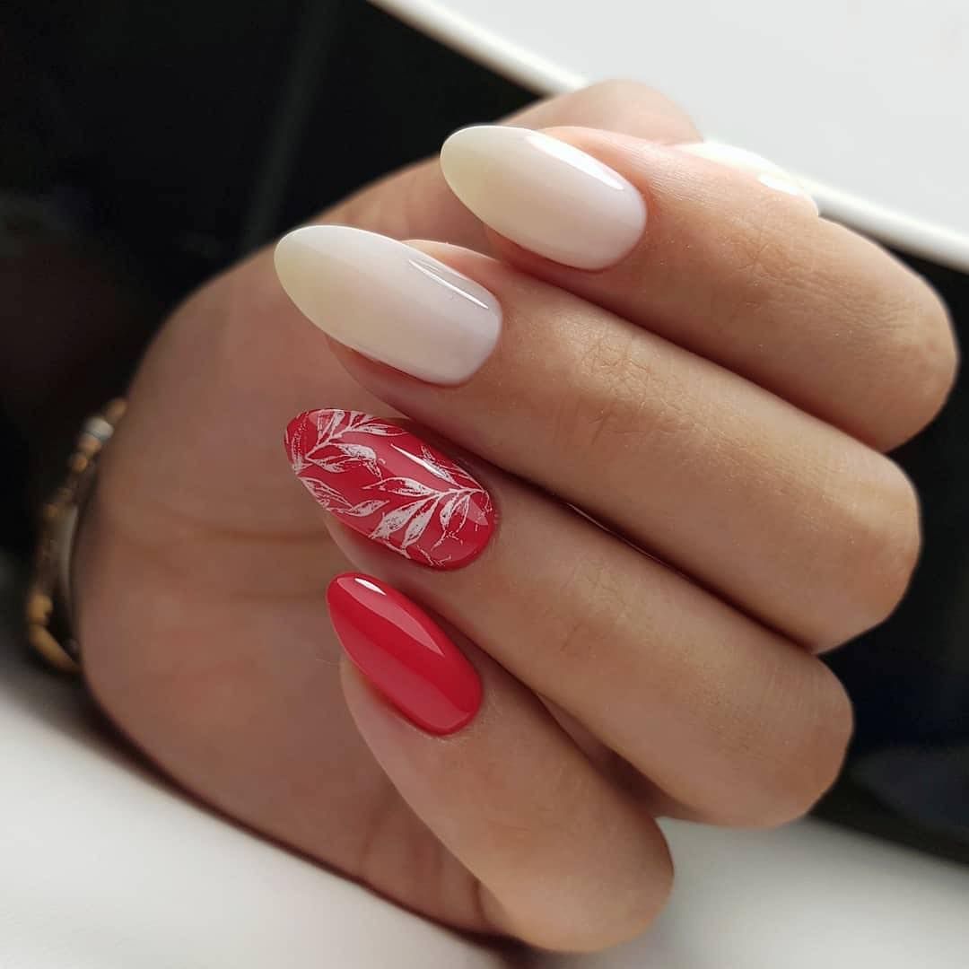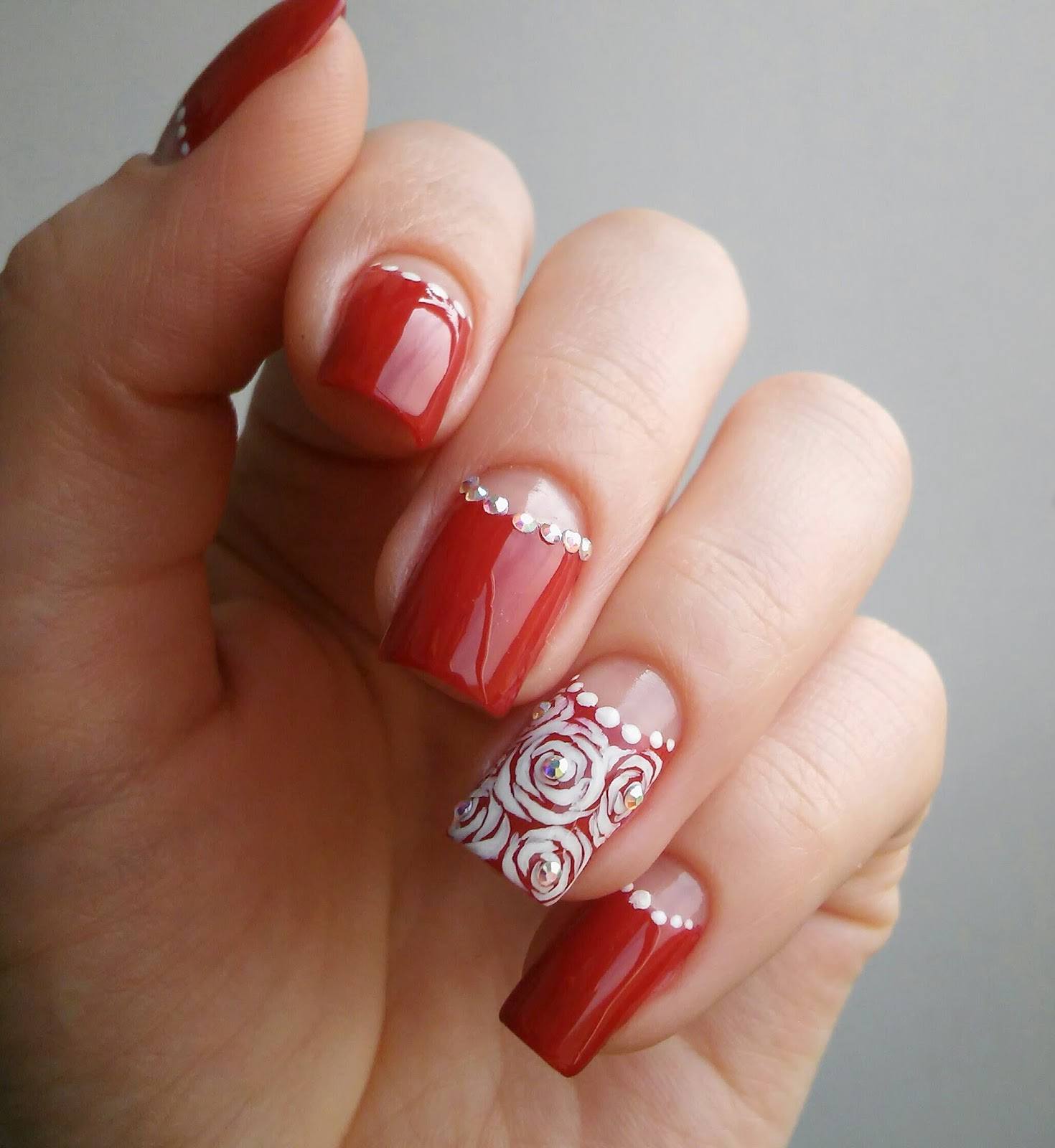 - Модные красные и бордовые оттенки лаков каждый сезон занимают топовою нишу в нейл-арте, дизайн ногтей в этих цветах выглядит очень шикарно и стильно. Эти оттенки идеально сочетаются с золотистыми и серебристыми блестками, а также разными стразами.
