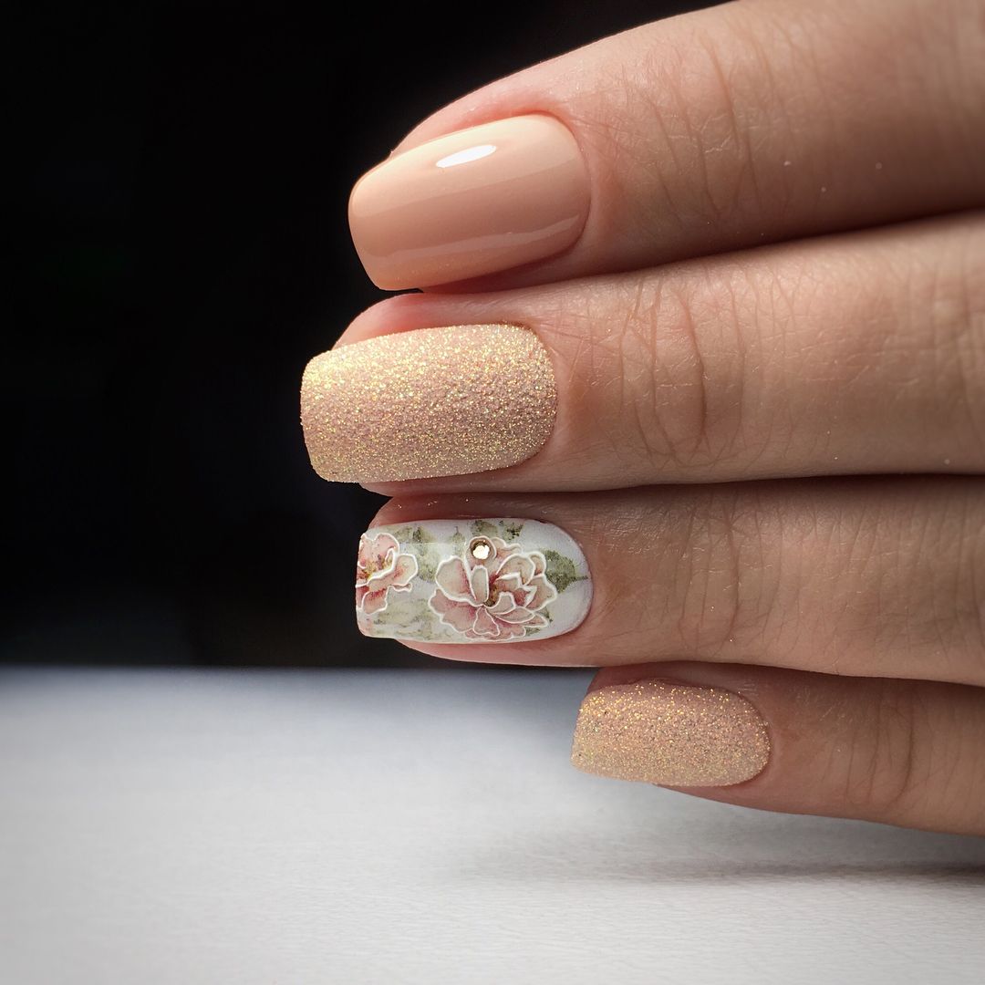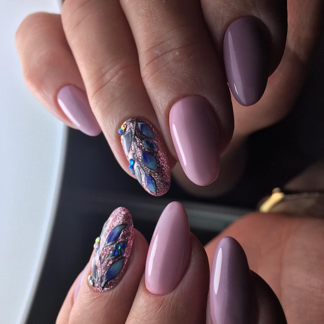 Безусловно, красивый модный рисунок на безымянном пальце должен быть главным акцентом в маникюре. Но порой этого недостаточно и в таком случае декор особенно уместный. В зависимости от стиля дизайна стоит выбирать совершенно разные виды. Наибольшей популярностью пользуются стразы, блестки, бусины, фольгированные элементы и втирка. Каждый из них дает разный эффект на ноготках. Также в зависимости от желаемого результата можно наносить необходимое количество декора.