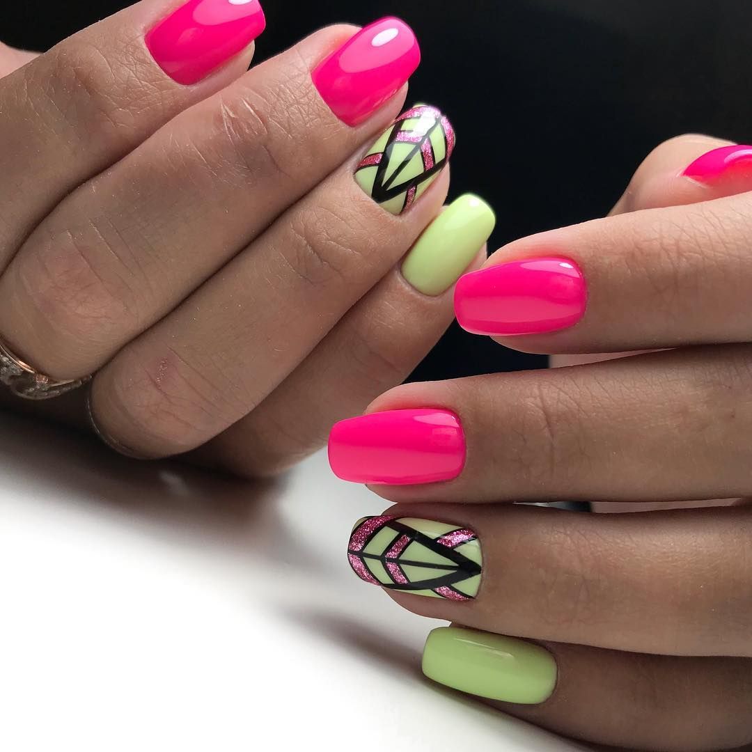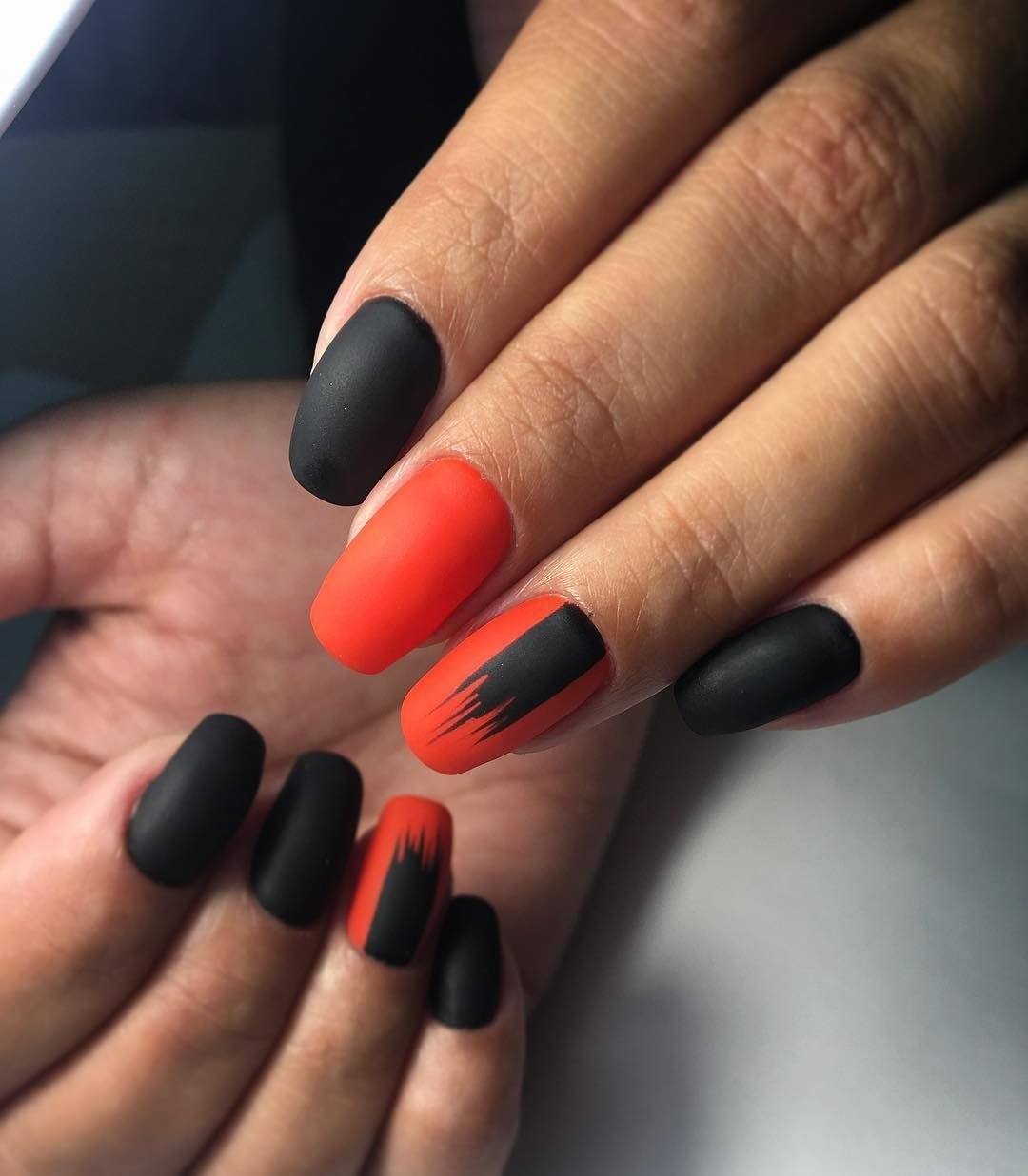 Отдельно стоит отметить, что черный маникюр нередко сочетают с другими оттенками. В частности с контрастными вариантами в виде белого, розового, желтого, зеленого и красного цвета. Это позволяет чуть больше экспериментировать с сочетаниями и рисунками в том числе. В свою очередь, пастельные тона вместе с черным покрытием встречаются чуть реже. Но в целом такой маникюр выглядит интересно, особенно если украсить его легким эффектом дымки или позолотой из фольги. Кстати, в данном случае нередко можно увидеть глянцевое и матовое покрытие в одном маникюре. Это современное решение, которое украсит абсолютно любой дизайн.