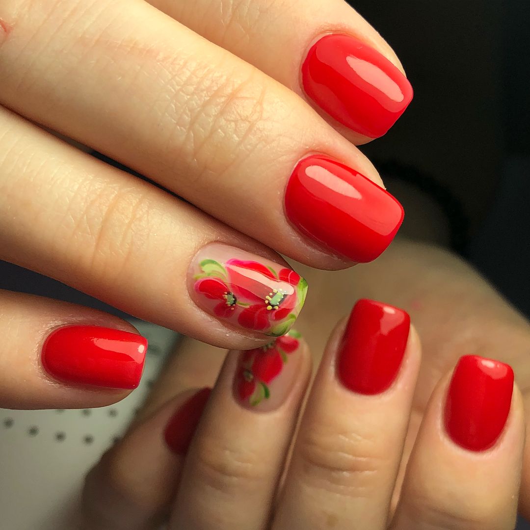 В процессе выбора дизайна стоит учитывать актуальный сезон. К примеру, весной лучше всего смотрятся тюльпаны, ландыши или сирень. В свою очередь, летом более актуальными будут яркие подсолнухи, пионы и лилии. В осеннем сезоне вместо цветов преимущественно изображают пожелтевшие листья. Каждый вариант по-своему привлекательно выглядит и украшает маникюр на безымянном пальце.