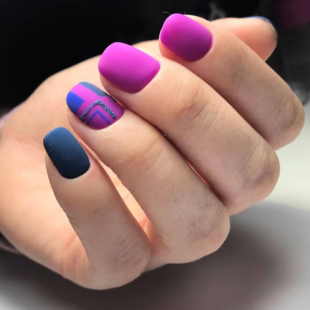 В 2020 году актуальной будет не только глянцевая фактура, но и стильный матовый маникюр. Нейл-мастера отмечают, что он не слишком броский, поэтому идеально подходит не только для вечерних мероприятий, но и просто на каждый день. Конечно же, если вы хотите сделать его более праздничным, то можно использовать фольгированные вставки или блестки разных оттенков и размеров. Также не забывайте, что визуальное восприятие во многом зависит от длины и формы ногтей. Короткие квадратные ноготки – лучший выбор на каждый день. В то же время, на длинных острых ноготках такой маникюр будет выглядеть провокационно. Всегда учитывайте этот нюанс и делайте выбор прежде, чем отправиться в салон красоты.