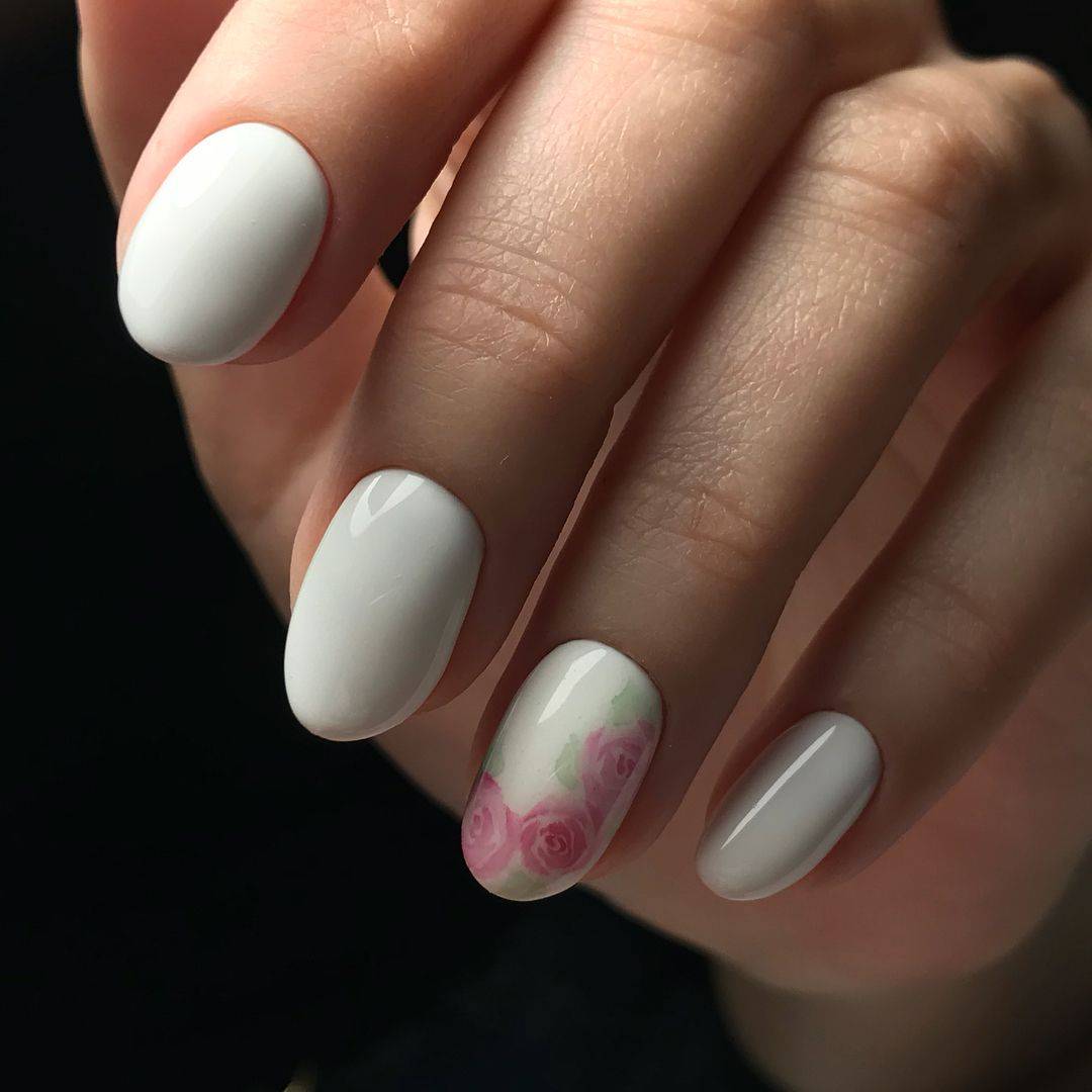 Чтобы украсить ногти, например, ярким цветочным орнаментом на белом фоне, понадобится: