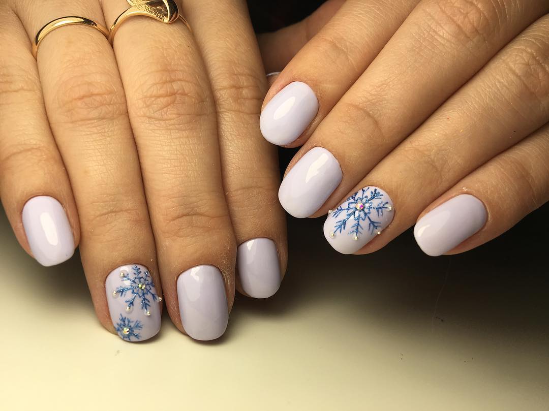 Отлично будет смотреться маникюр, сделанный в зимних тонах, омбре, градиентный. Очень красиво выглядит серебристый кракелюр. Такой маникюр напоминает узор на стекле в морозную погоду. Не следует делать ноготки черного, грязно-зеленого или синего цвета.