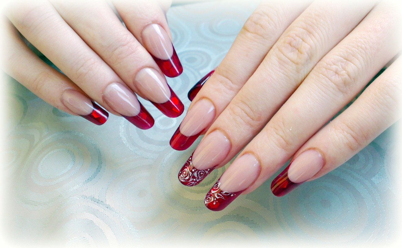 Без предварительной обработки рисовать улыбку можно при условии, что свое ногтевое ложе длинное. Даже если отросший кончик достаточно длинный, но основная часть ногтя короткая, выполненный темным френч будет, опять же, еще больше визуально уменьшать его. Поэтому, если такая проблема существует, пластину нужно удлинять. Обычно это делается с помощью гелей или гель-лаков, цвет которых, в зависимости от пожеланий, варьируется от бежевого до розового.